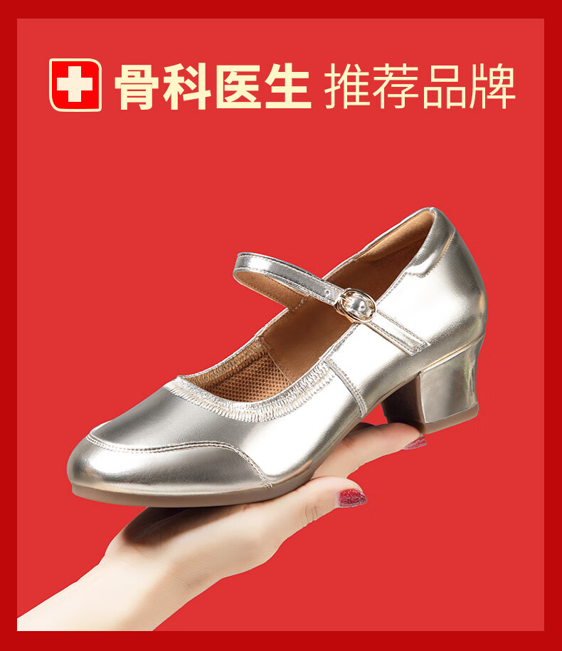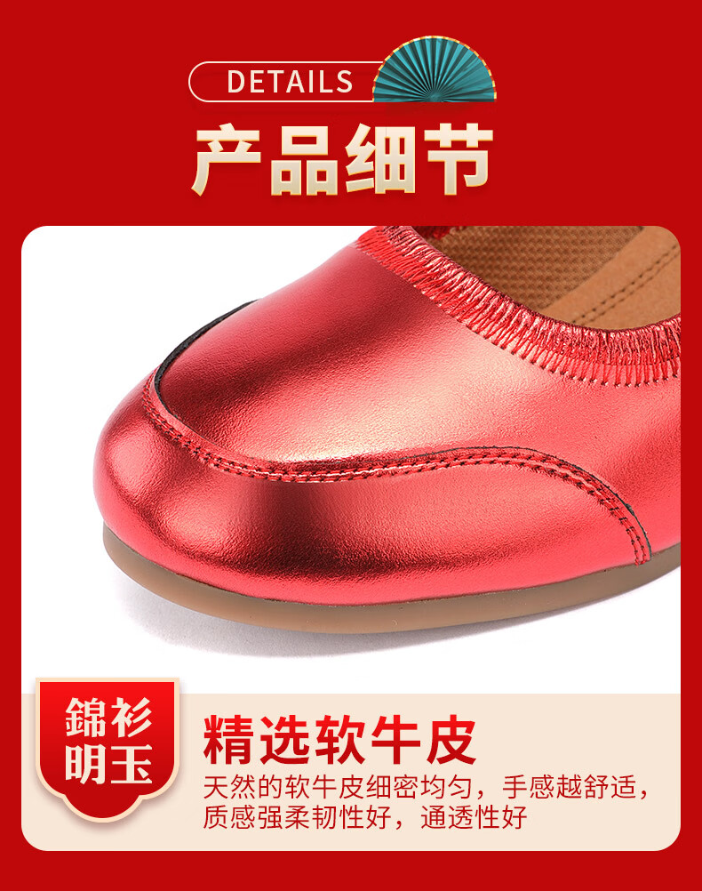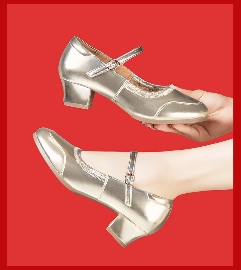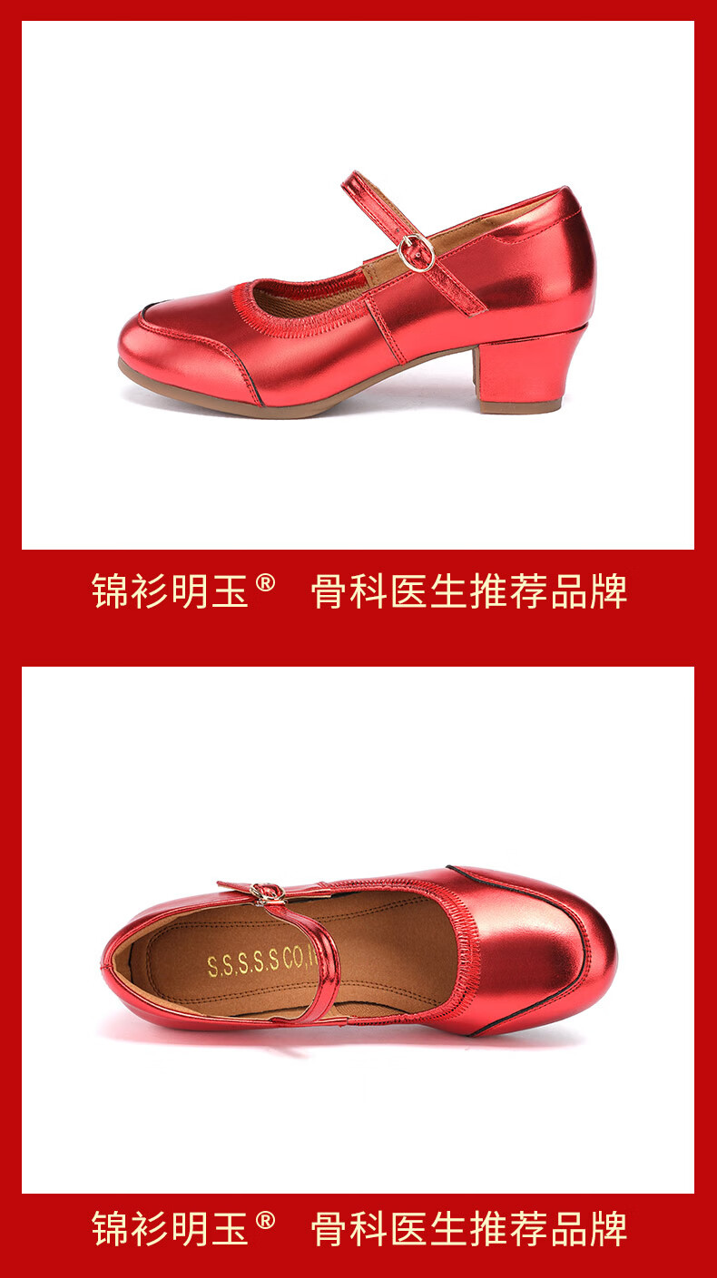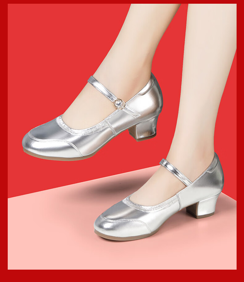 Jinshan Mingyu cowhide dance shoes for women square dance soft leather medium low heel Latin dance shoes tendon bottom ballroom dance adult small leather shoes silver heel height 3.5CM 38