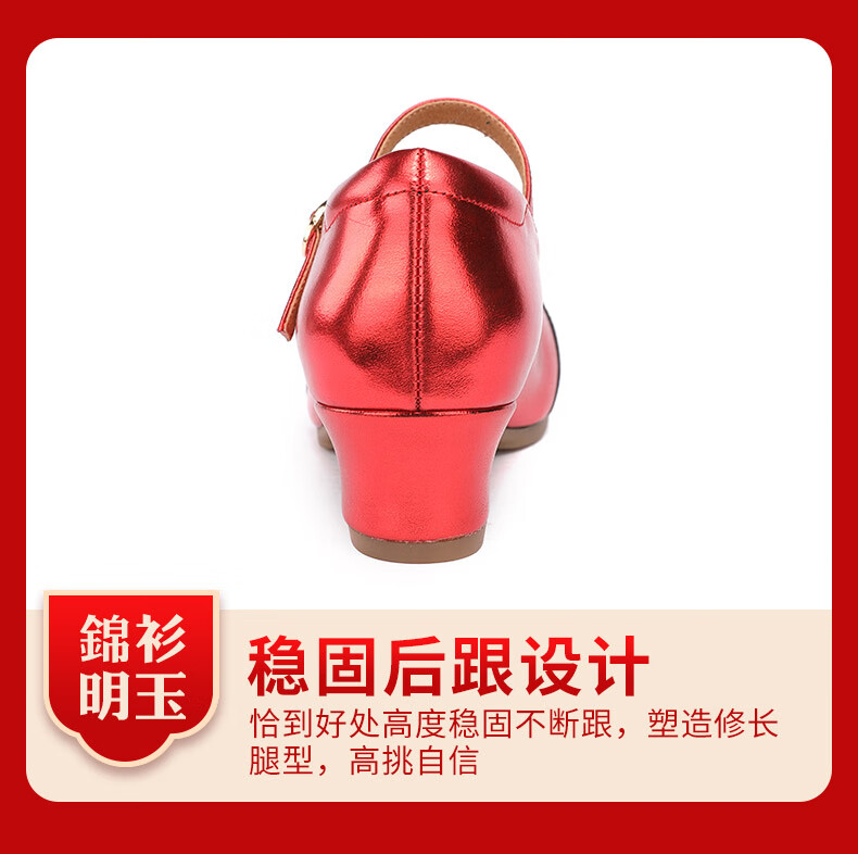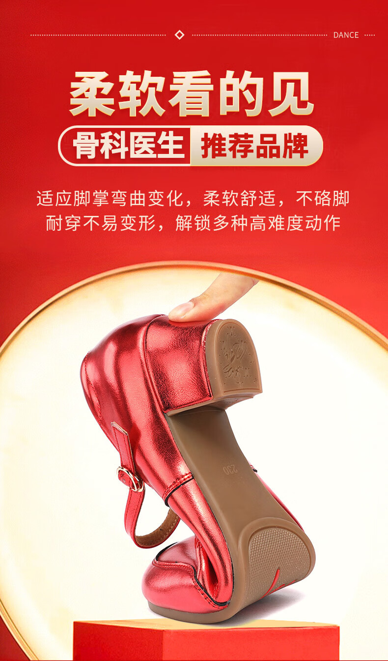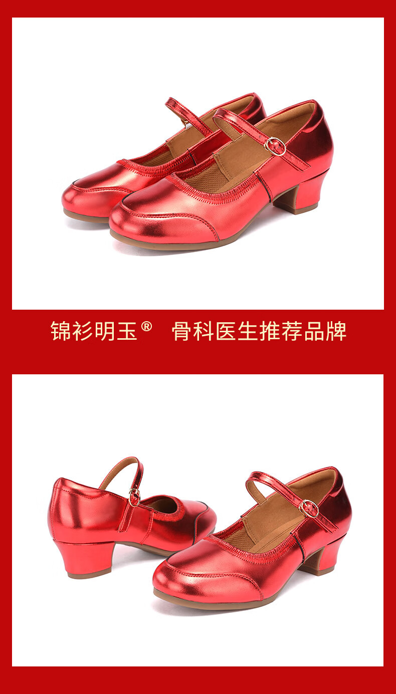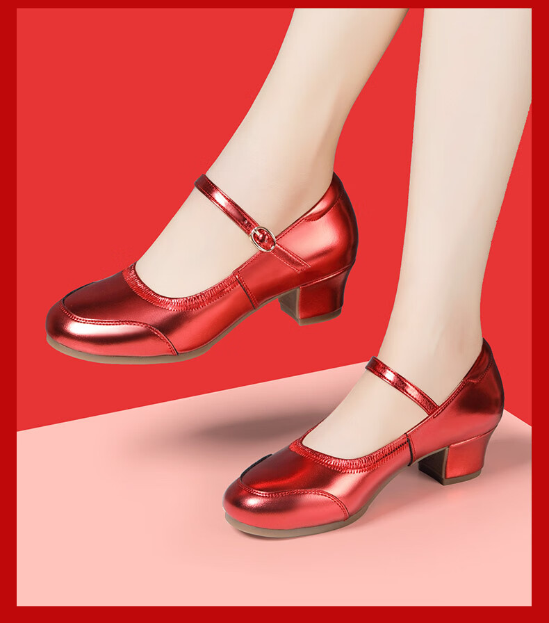 Jinshan Mingyu cowhide dance shoes for women square dance soft leather medium low heel Latin dance shoes tendon bottom ballroom dance adult small leather shoes silver heel height 3.5CM 38