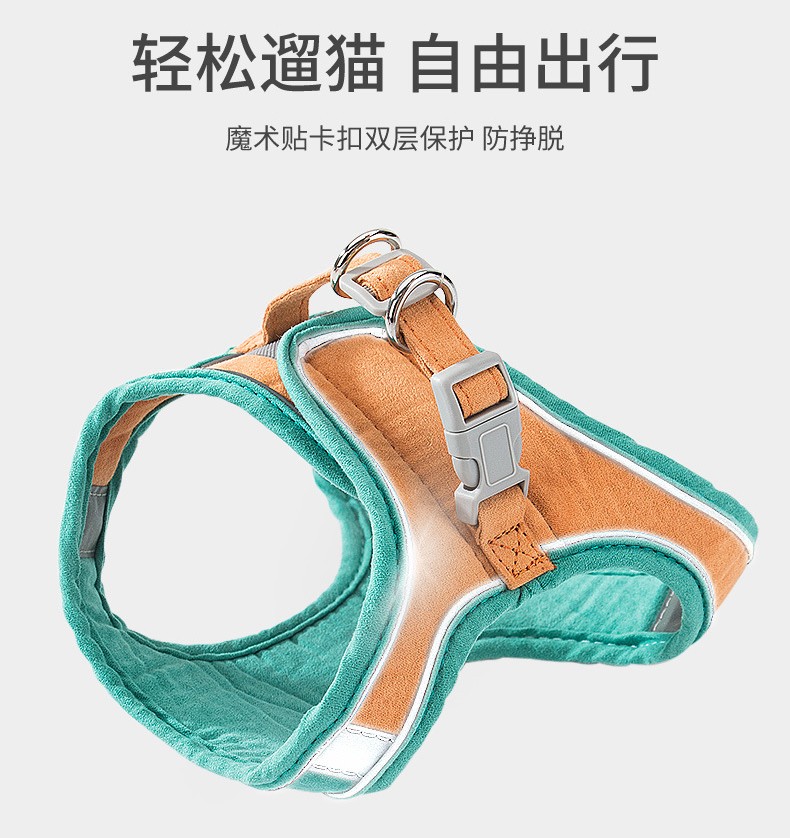 SLPC cat leash cat rope anti-breakaway vest pet harness Teddy Pomeranian small dog leash green and orange splicing + 3 meters telescopic rope M (recommended 4 8Jin Jin equals 0.5 kg)