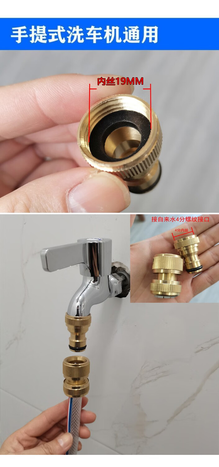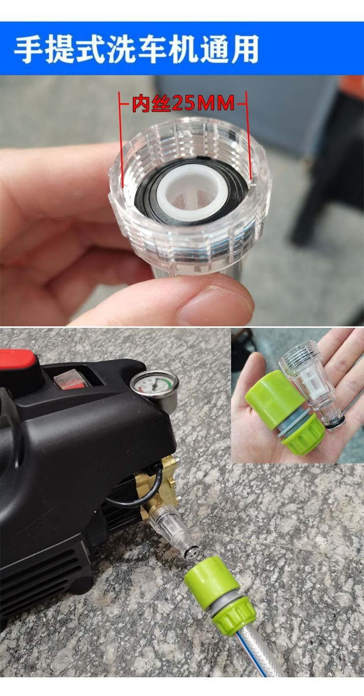 DIQIWEI DIQIWEI Household High Pressure Car Washing Machine Accessories Pacifier Water Inlet Pipe Filter Quick Connector Guide Car Yili Universal Copper Nipple Connector + Copper Quick Connector (25MM Thread)