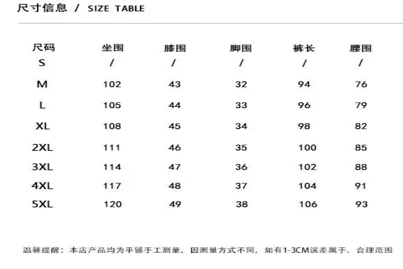 Outseam (cm) 99 cm 101.5 cm 104 cm 106.5 cm 109 cm