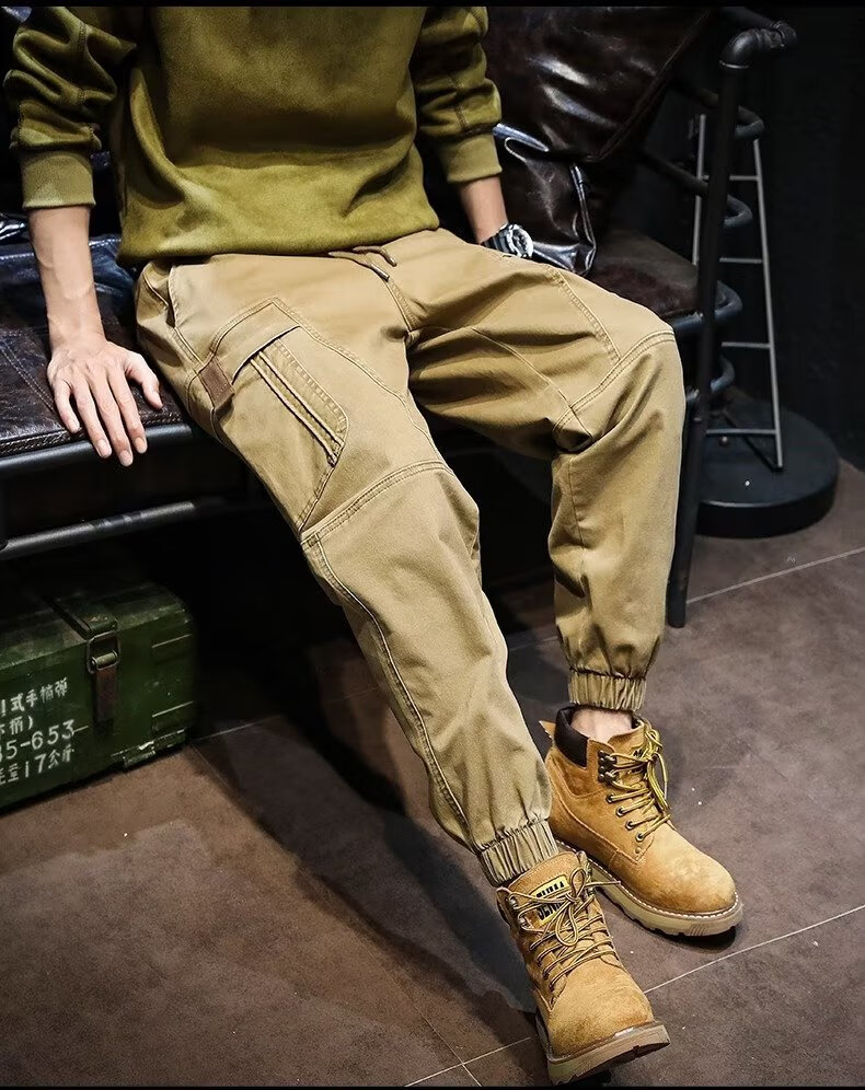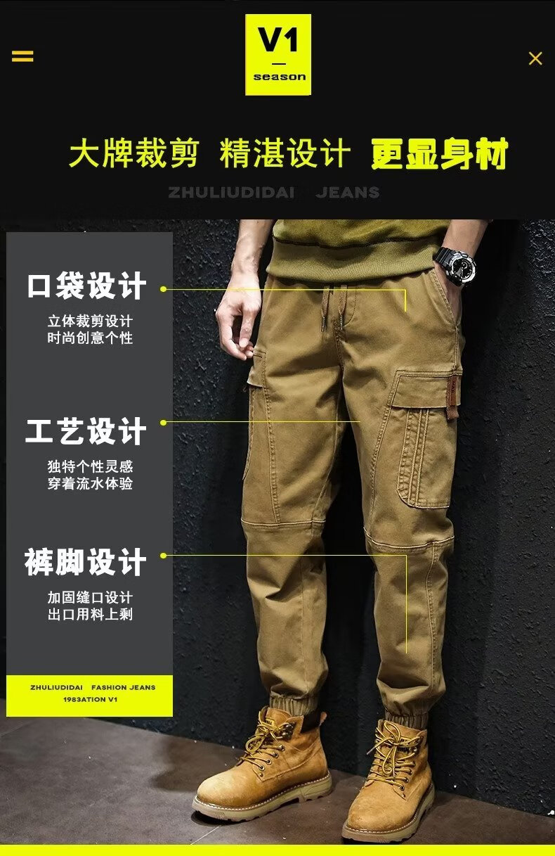 Capti American Navy Retro Workwear Pants Men's Loose Trendy Brand Spring Autumn and Winter Casual Pants Men's Large Size Leg Pants Khaki Spring and Autumn Regular Style Free Shipping Insurance XL (175) 130-145Jin Jin is equal to 0.5 kg