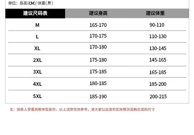 China (cm) 165 / 88-90 170 / 96-98 175 / 108-110 180 / 118-122 185 / 126-130