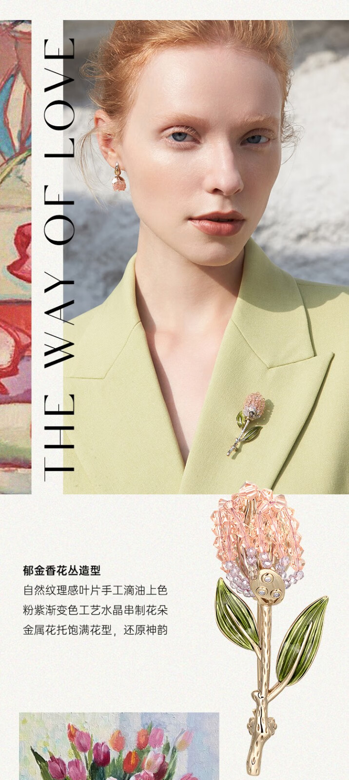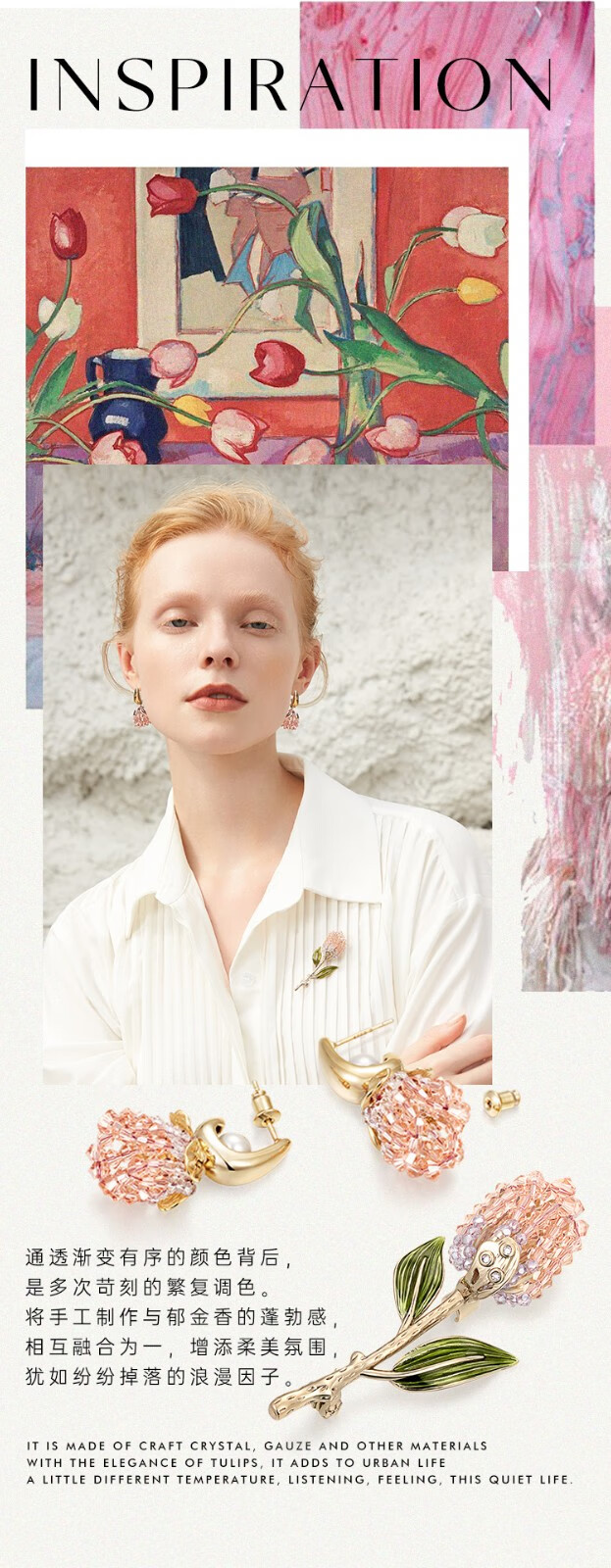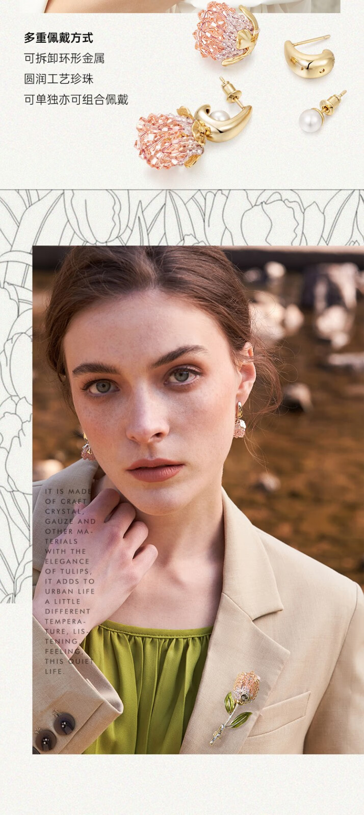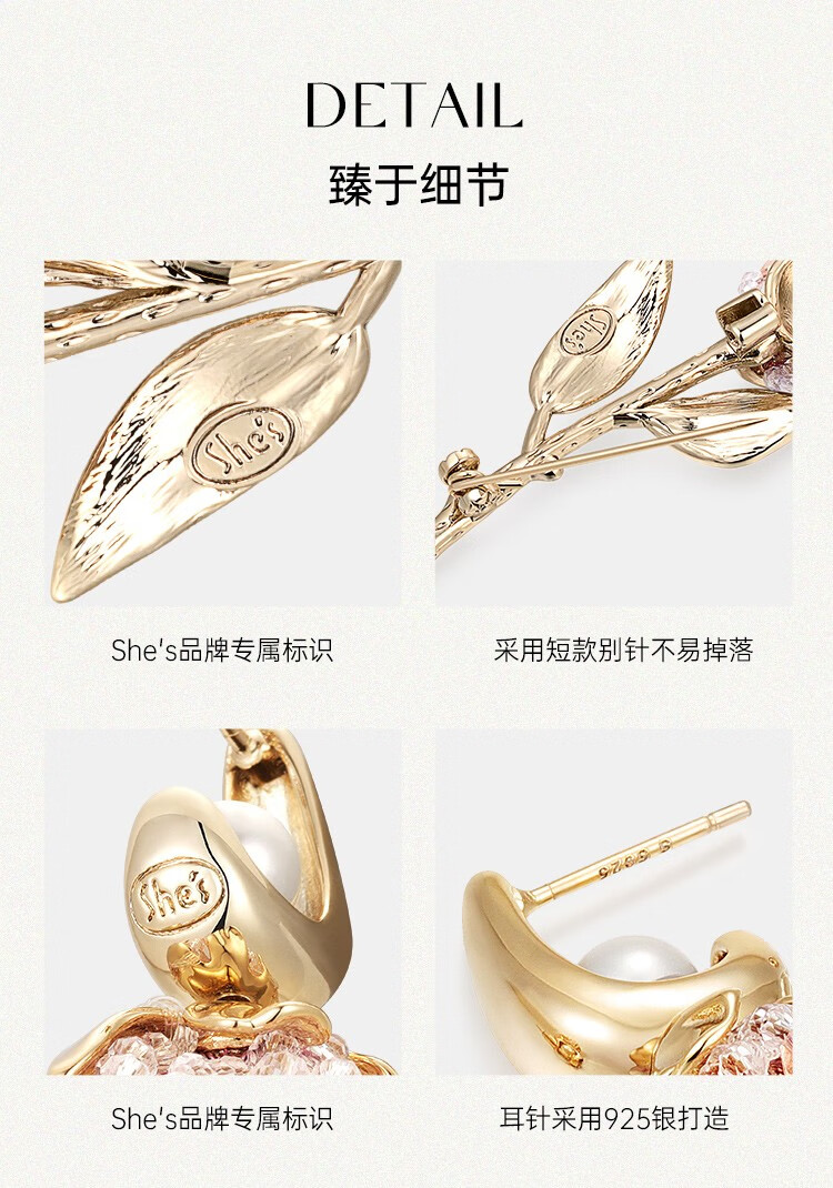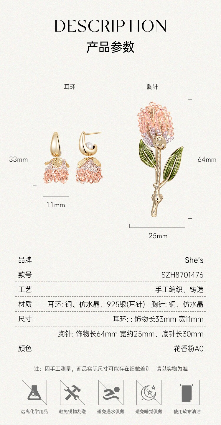 She s Akiko's love look tulip brooch brooch brooch earrings earrings combination set gift box birthday gift for women floral pink brooch A0