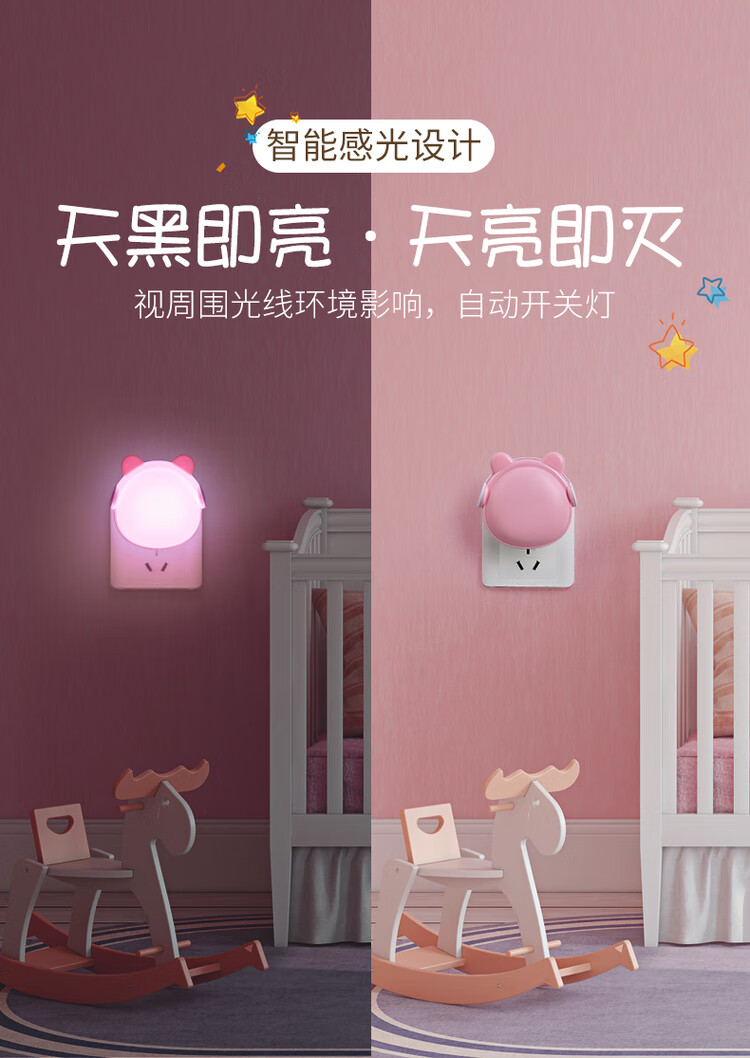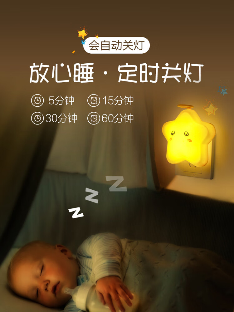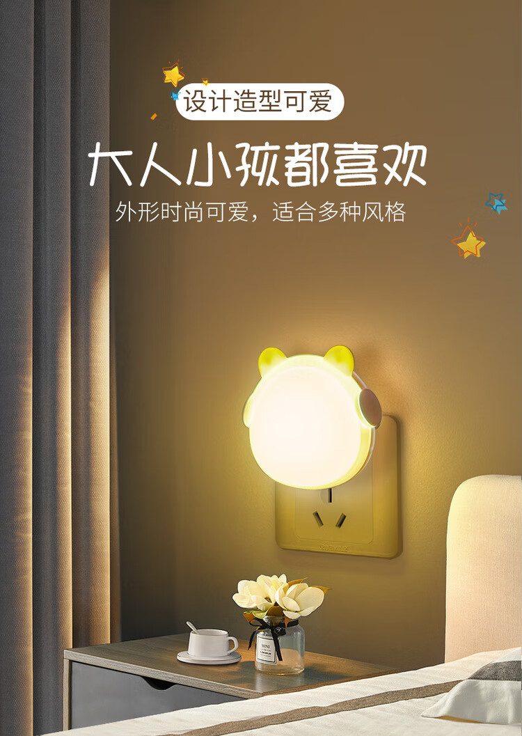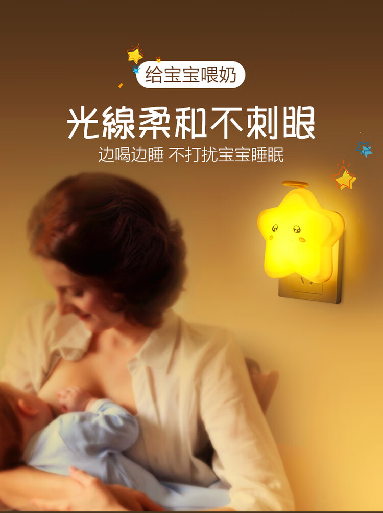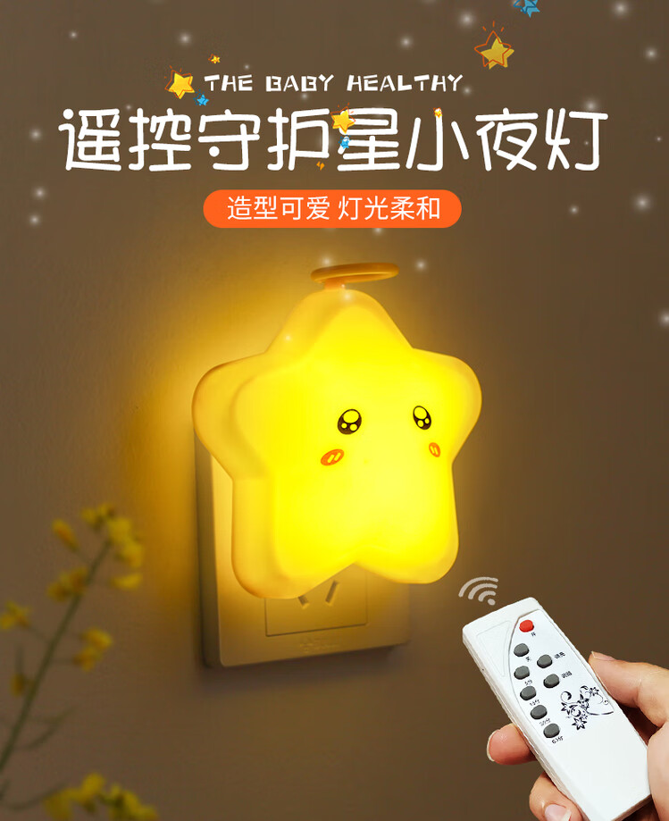 Plug-in night light bulb remote control bedroom bedside luminous socket energy-saving baby feeding table lamp sleep eye protection guardian star plug-in yellow light yellow + remote control with switch