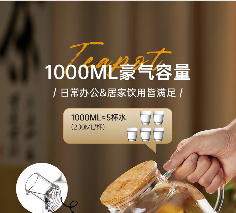 YIHUTEA teapot glass teapot filtered high borosilicate thickened high temperature resistant household hospitality kettle single pot green tea teapot can be used as a cold kettle or boiling teapot 1000ml
