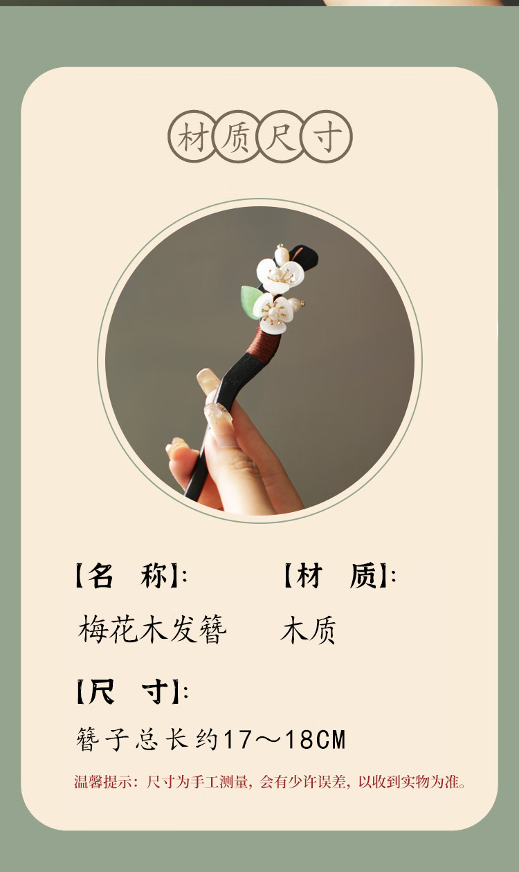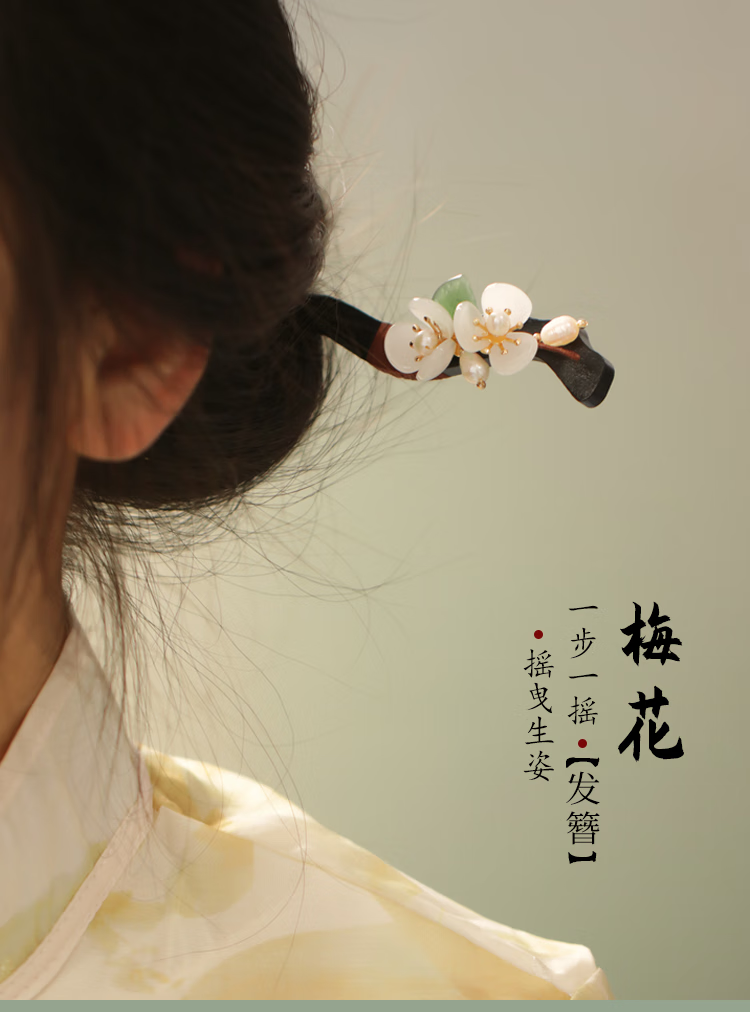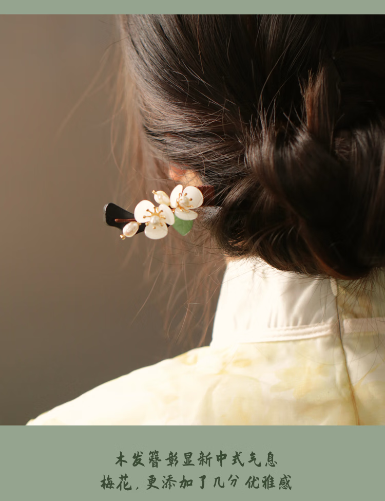 Jianlu Plum Blossom Wooden Hairpin Women's Style Hairpin Ancient Costume Hanfu Headdress Accessories Hair Artifact Birthday Gift Plum Blossom Wooden Hairpin