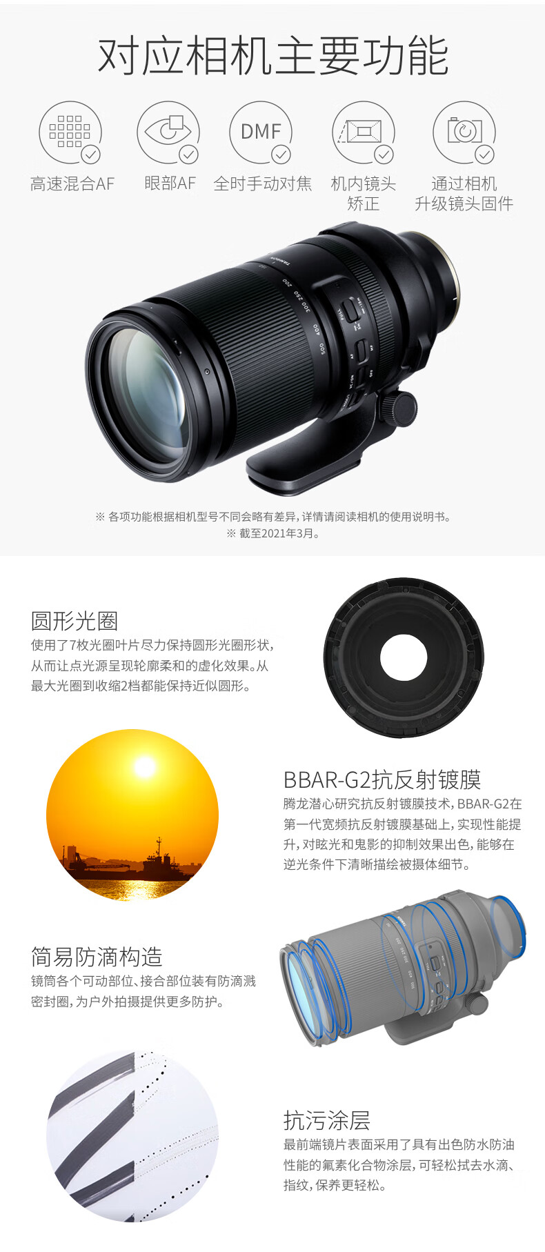 Tamron flagship store A057 150-500mm F/5-6.7 anti-shake Z mount/Sony mount full-frame mirrorless telephoto field 150-500 anti-shake lens Tamron 150500 Nikon Z mount official standard package free Blue Ship UV + large capacity backpack gift package