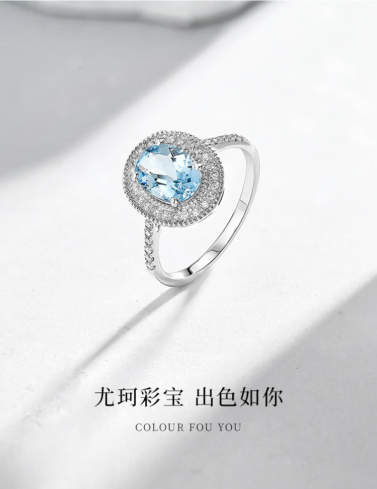 IL&CO Youke ice blue pigeon egg 18K gold natural aquamarine ring women's group set diamond ring birthday gift natural aquamarine about 1 carat size 16