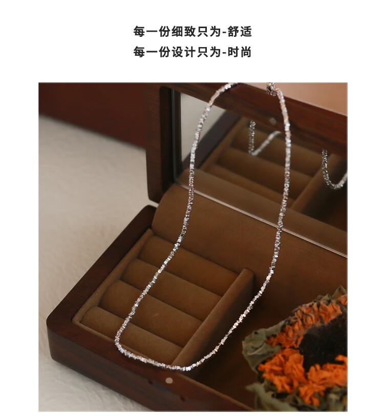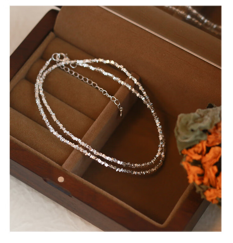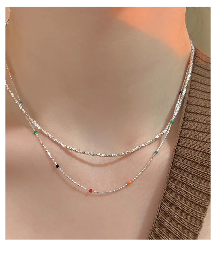Lnieer silver broken several taels of silver necklace women's clavicle chain stacked high-end S925 silver iu same style rainbow bean bead necklace colored beads broken silver necklace looks great when worn alone or stacked