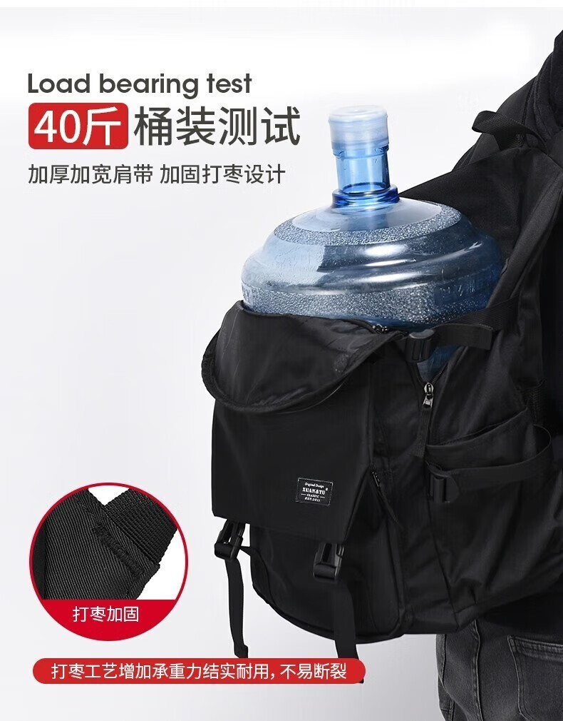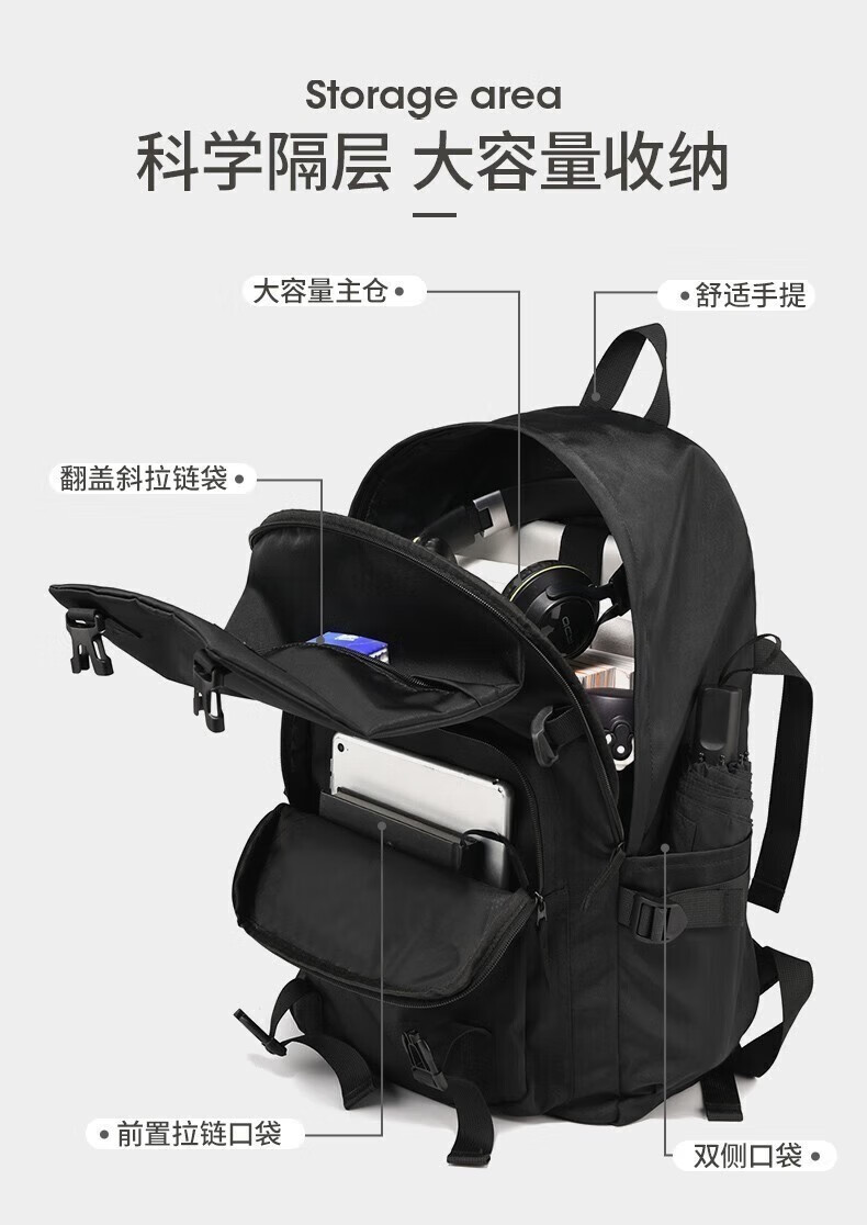 Double Star Backpack Men's Backpack Junior High School College Student Bag Large Capacity Casual Water-Repellent Computer Travel Bag Black Model