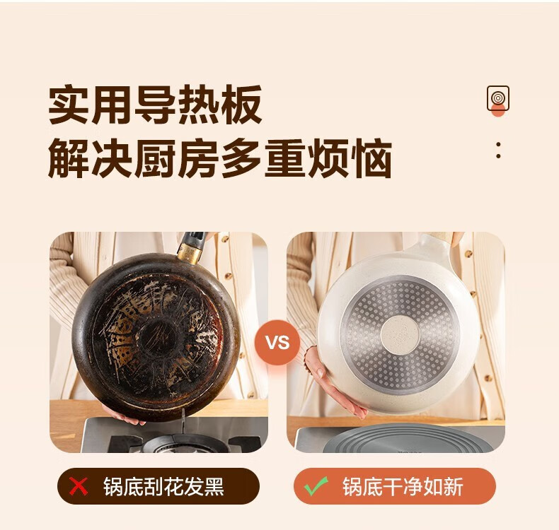 SUPOR universal heat conduction plate for pots, multifunctional gas stove heating insulation plate, anti-burn black thermal pad, heating and defrosting pot pad, universal heat conduction plate, diameter 24cm
