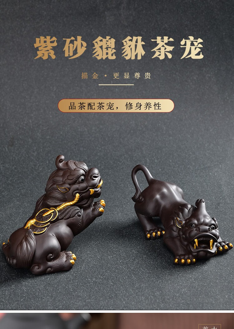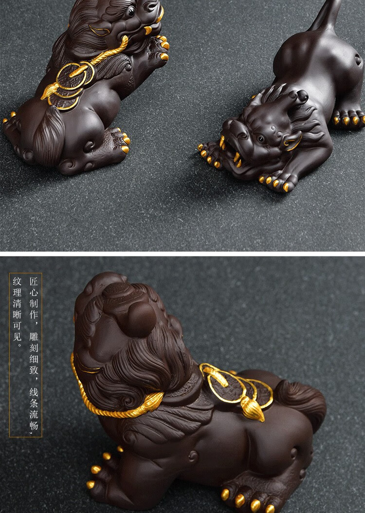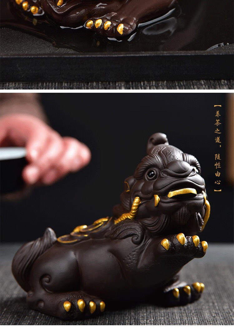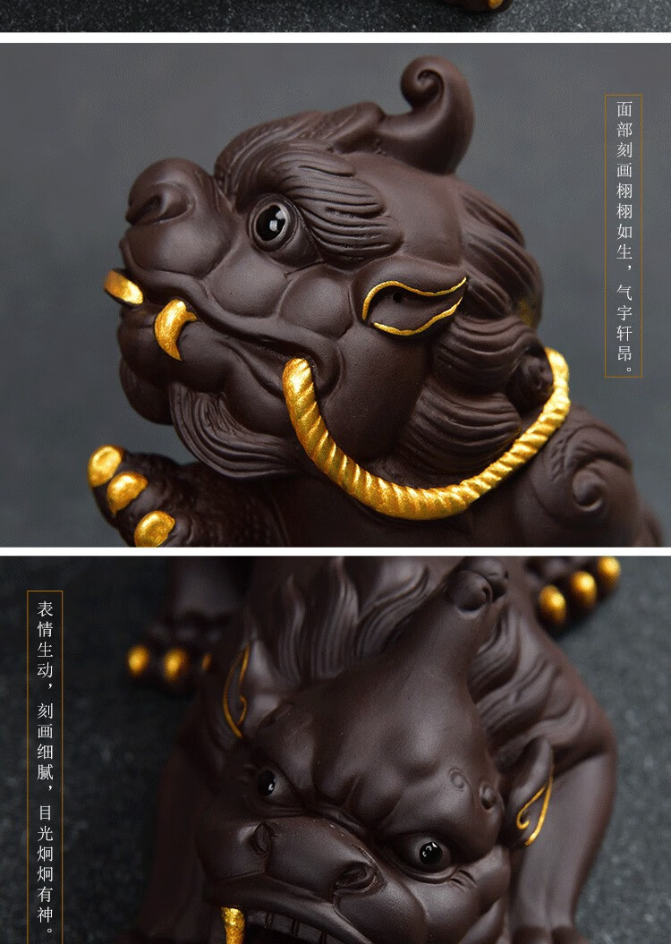Chengyun Shangzun (VHUNSZON) Purple sand tea pet, painted gold Pixiu, tea toy ornaments, tea tray, tea table, tea set, personalized color change, can support a pair of tea ceremony accessories, painted gold Pixiu to attract wealth