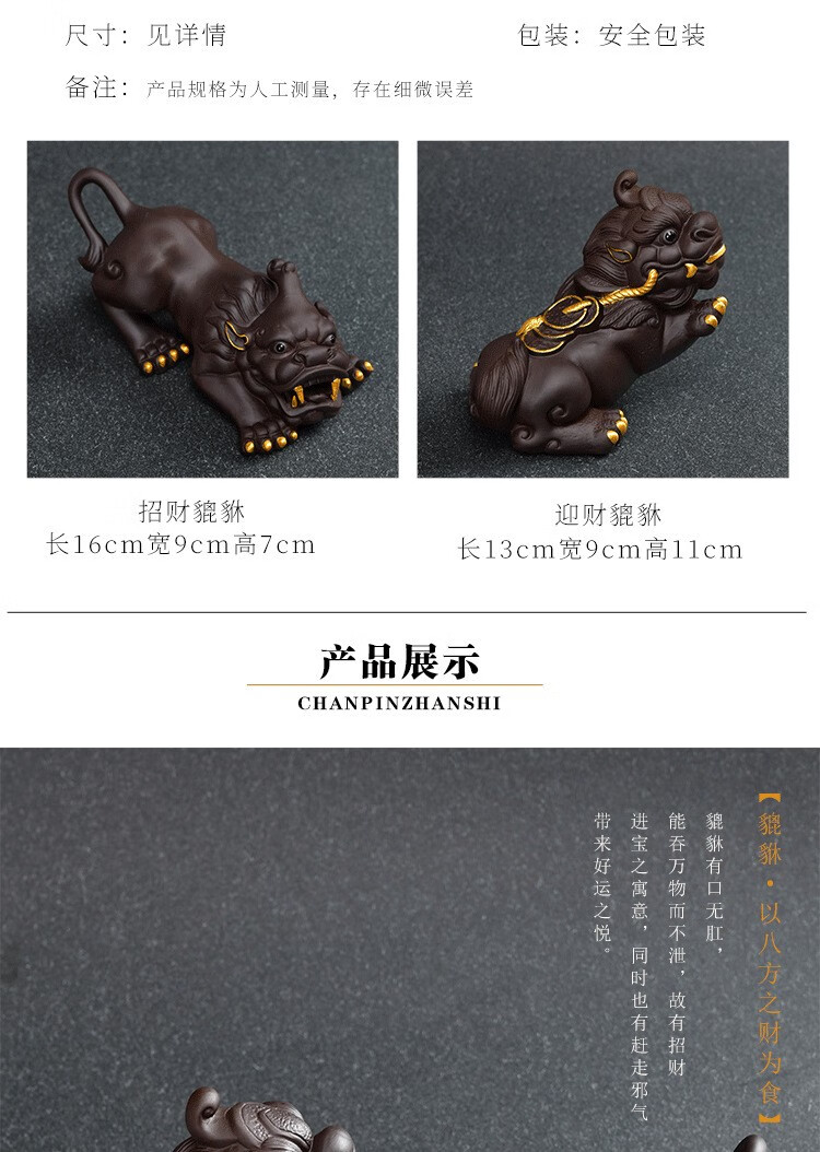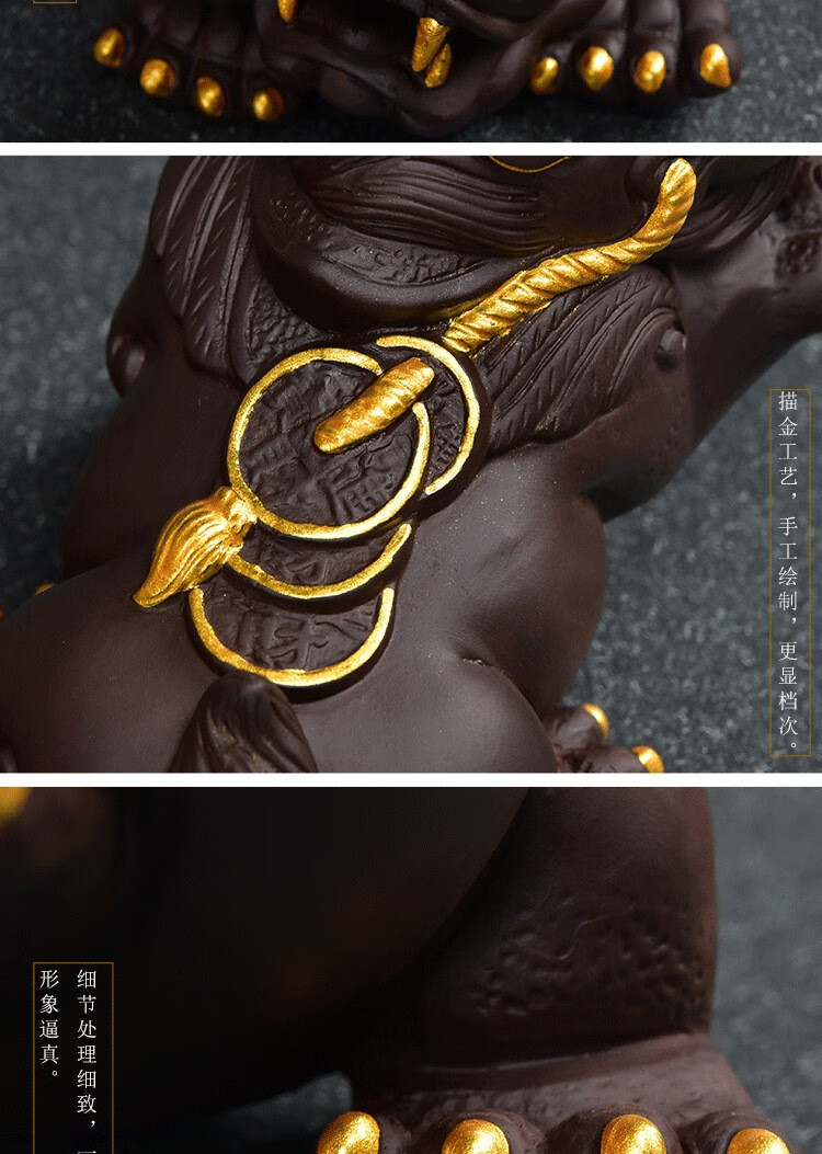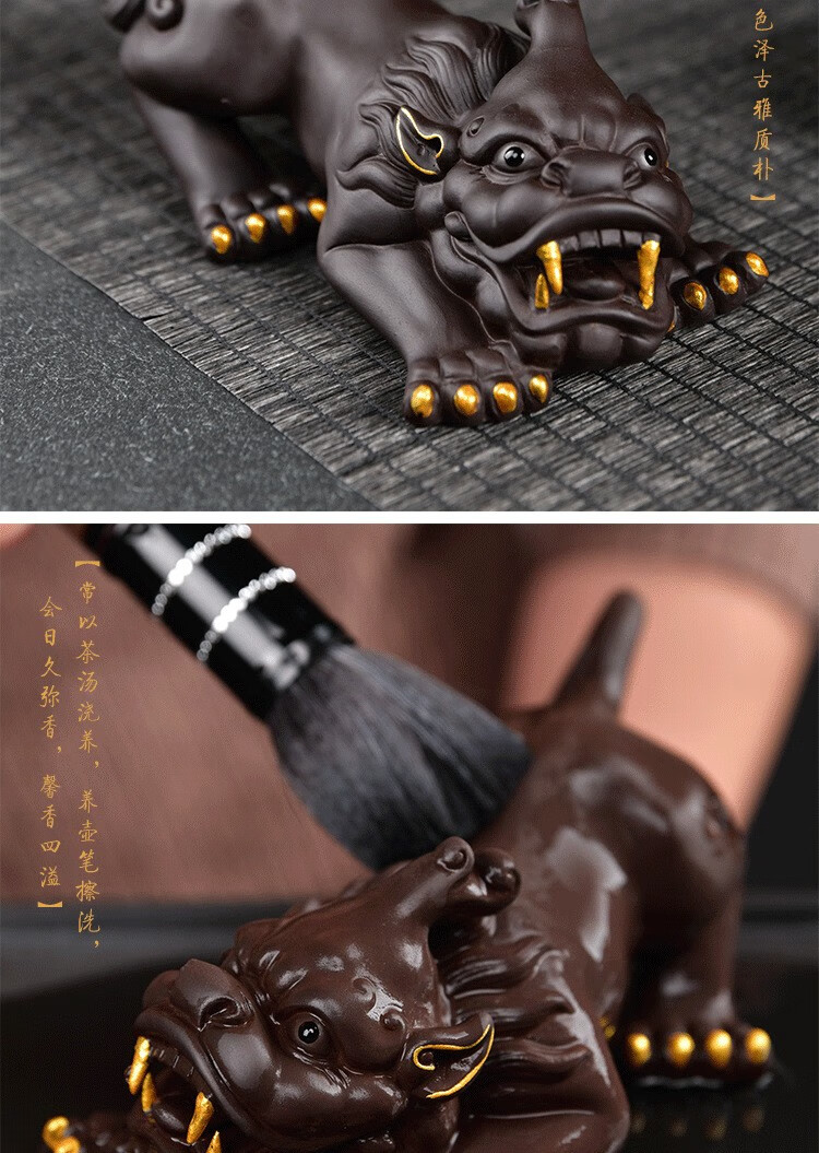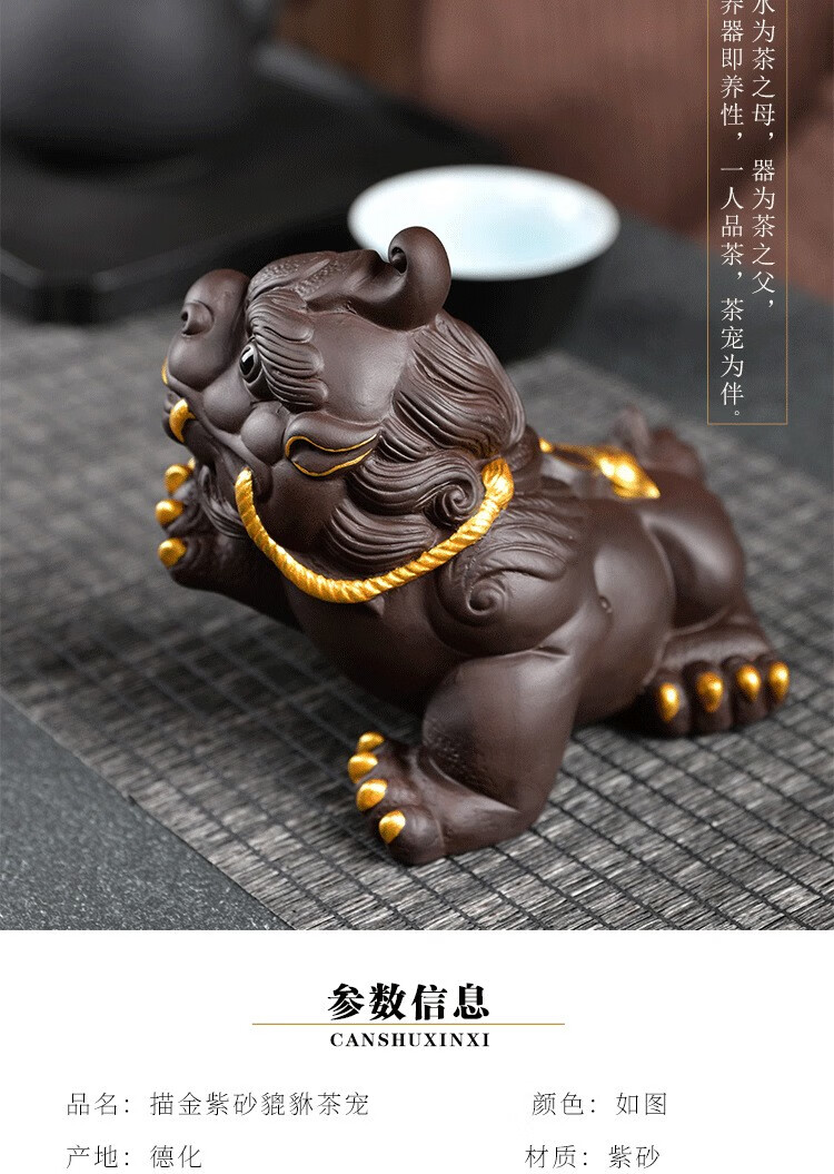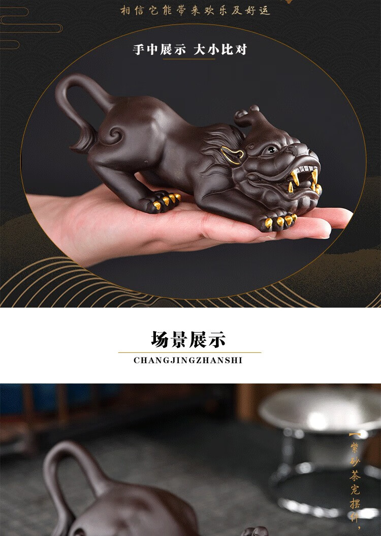 Chengyun Shangzun (VHUNSZON) Purple sand tea pet, painted gold Pixiu, tea toy ornaments, tea tray, tea table, tea set, personalized color change, can support a pair of tea ceremony accessories, painted gold Pixiu to attract wealth