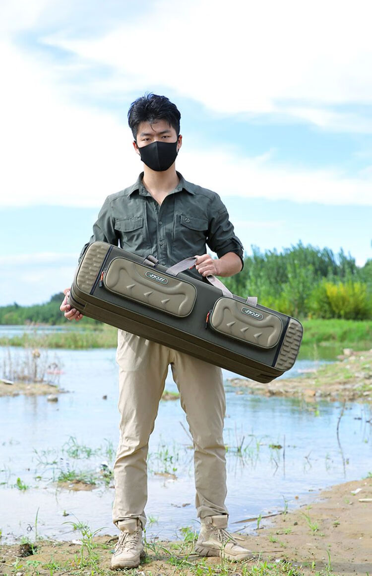 Makedi fishing rod bag canvas bag new waterproof lightweight large capacity portable sea rod bag multi-functional fishing bag fishing gear bag 80cm double layer composite thickening