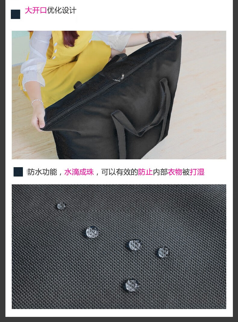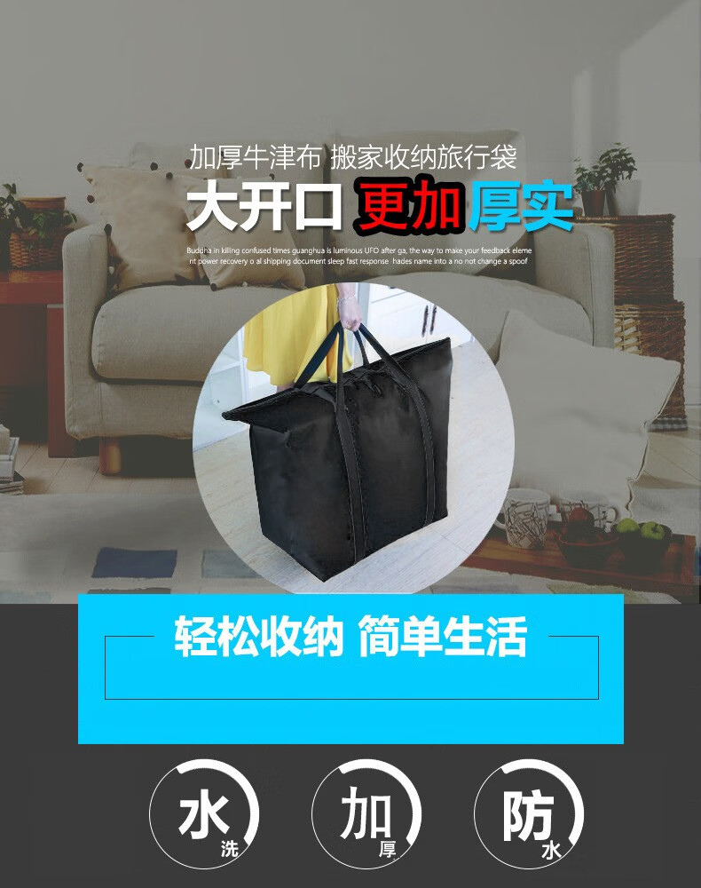 Hongtiepu Oxford Bag Moving Bag Thickened Waterproof Luggage Packing Bag Storage Bag Snakeskin Bag Handbag Black Small Size