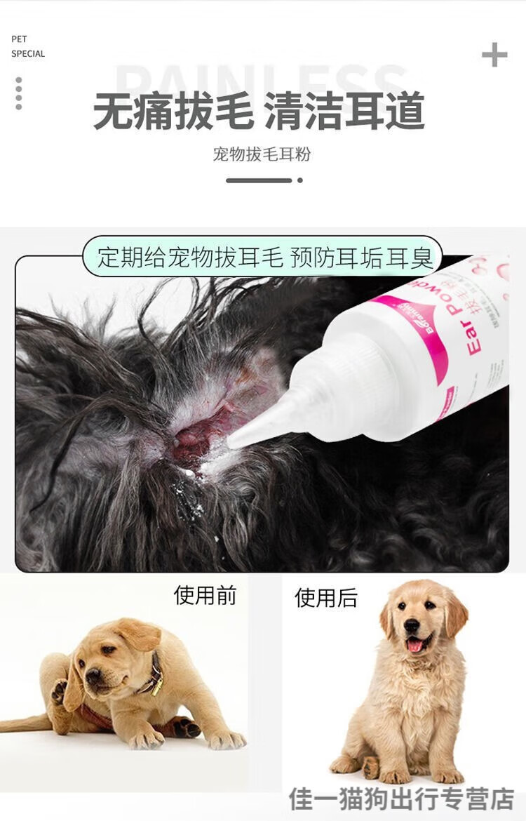 OEMG pet ear hair plucking powder painlessly cleans earwax dog Bichon Teddy ear ear mite hair plucking powder ear cleaning powder ear hair powder + pet hair plucking pliers + cotton swabs