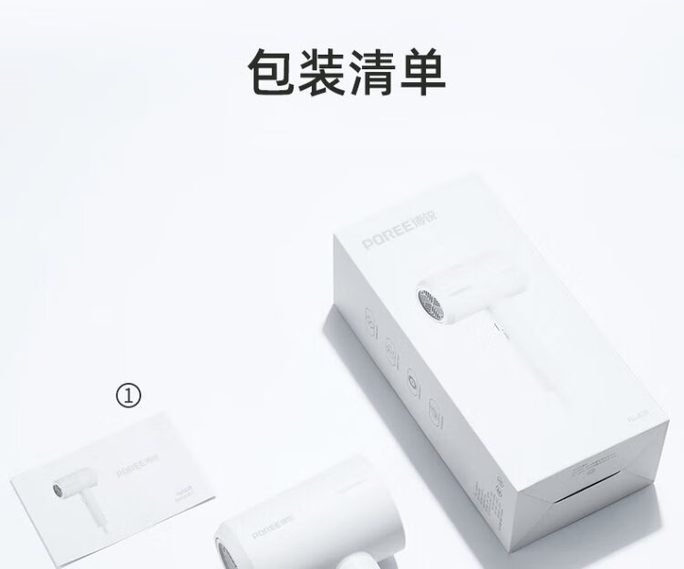 POREE hair dryer household soft air 1800W high power hot and cold air hair dryer constant temperature negative ion hair care low noise fast drying gift for girlfriend festival birthday Mid-Autumn Festival ANION negative ion straight style - ivory white