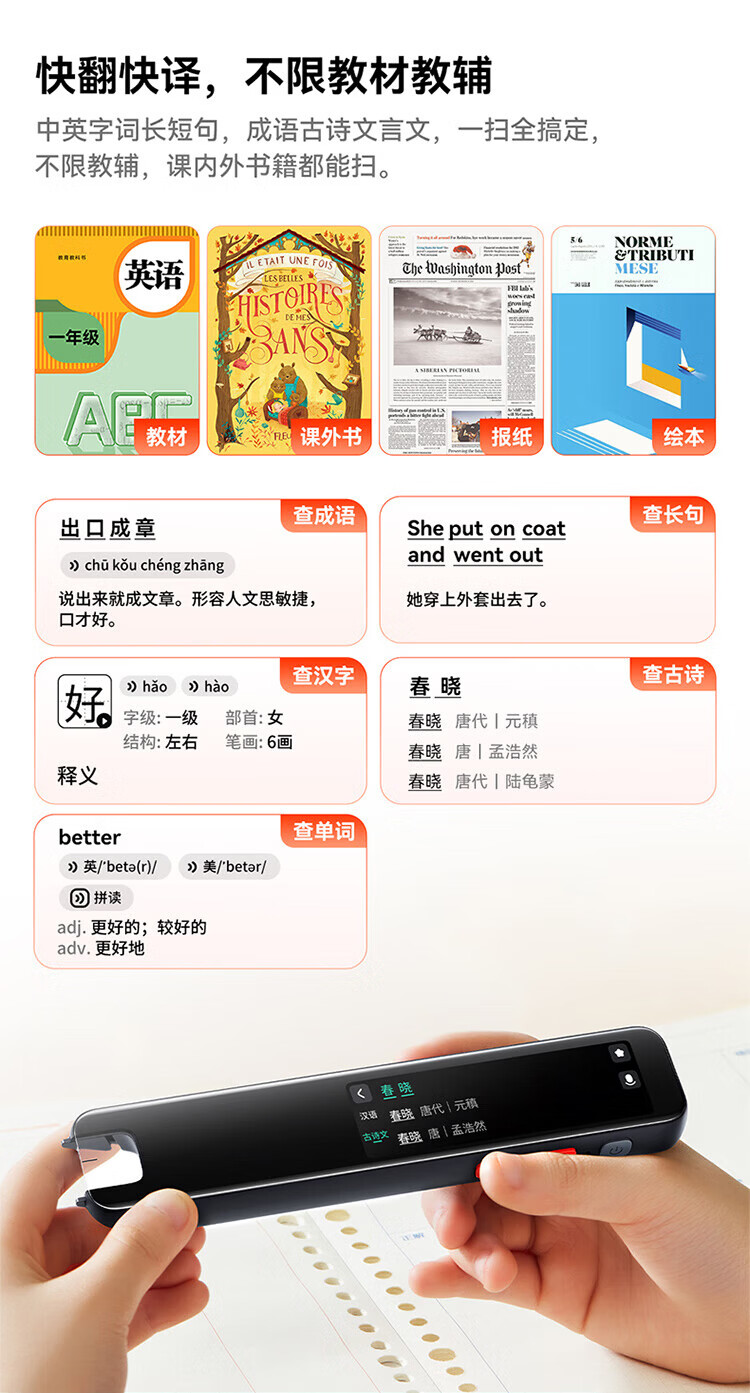 Homework Helper Learning Pen S2/D2 Ready for next day delivery_Consult and enjoy surprise Dictionary Pen Reading Pen 3.2-inch Primary School High School General Subject Scanning Pen English Translation Pen Electronic Dictionary S2 Value for money 8GB