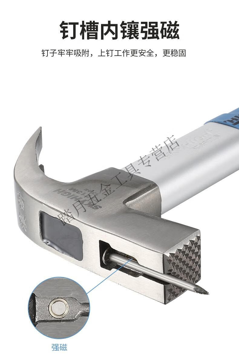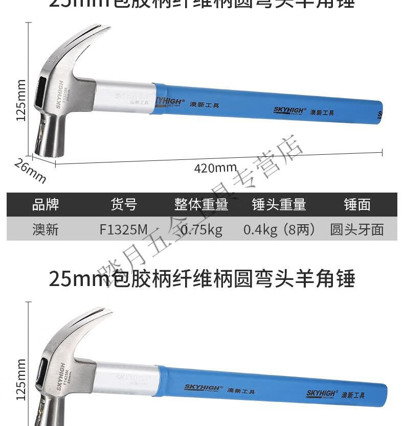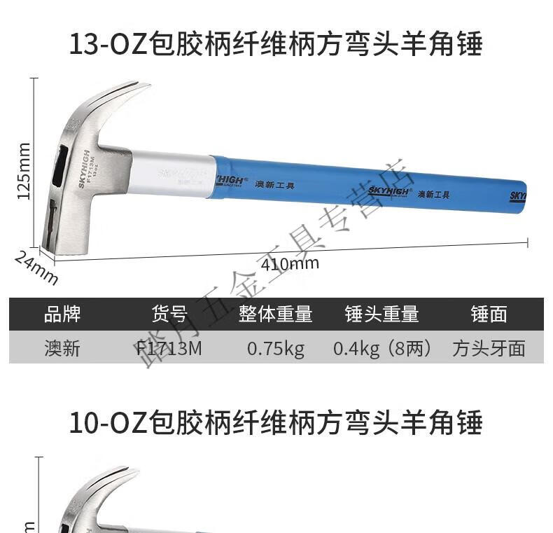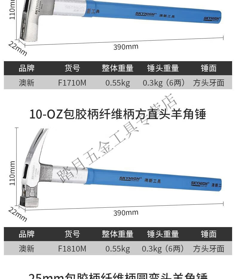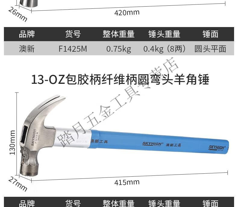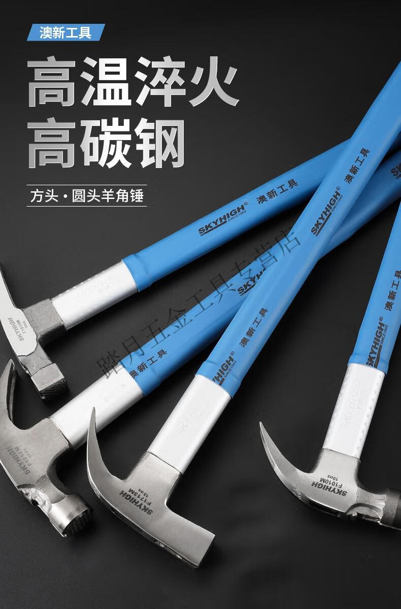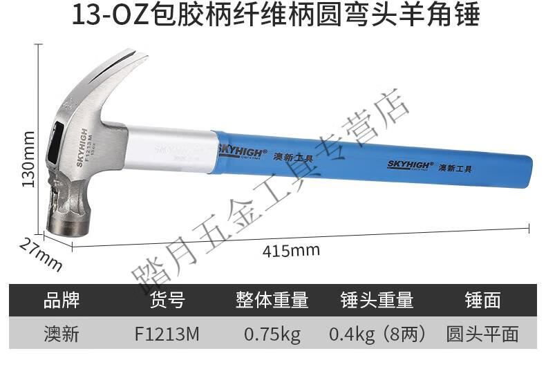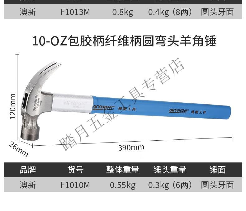 Australian and New Zealand claw hammer woodworking 6 liang 8 liang construction site hammer magnetic high carbon steel coated plastic fiber handle nail hammer Aoxin F1010M fiber handle round elbow tooth surface (hammer head 6
