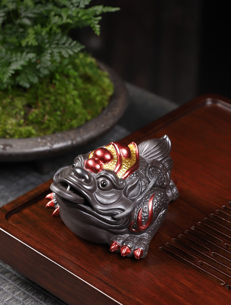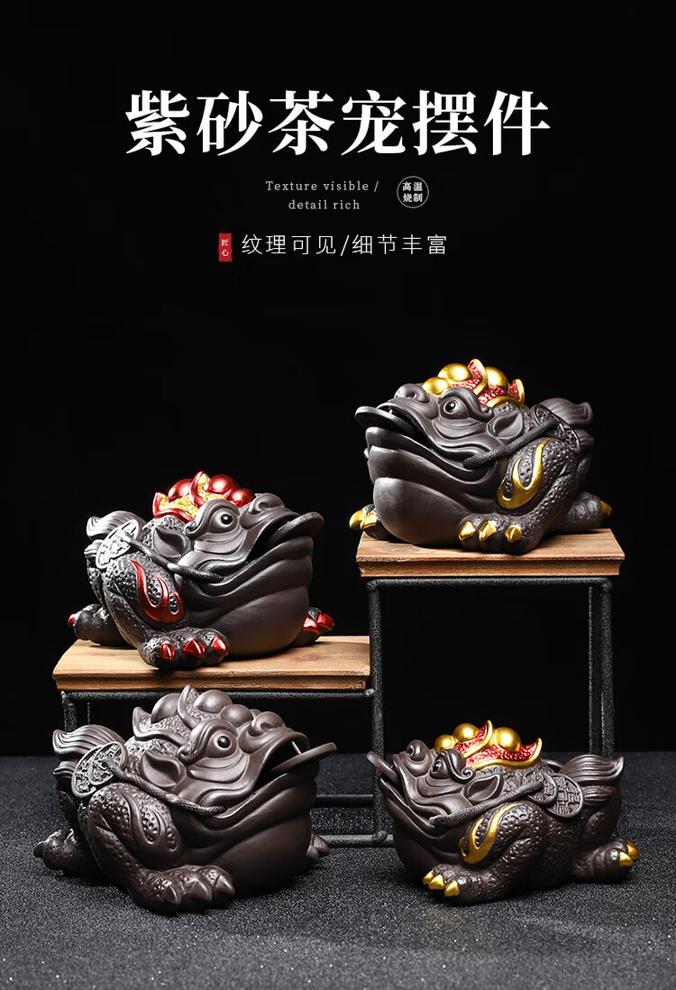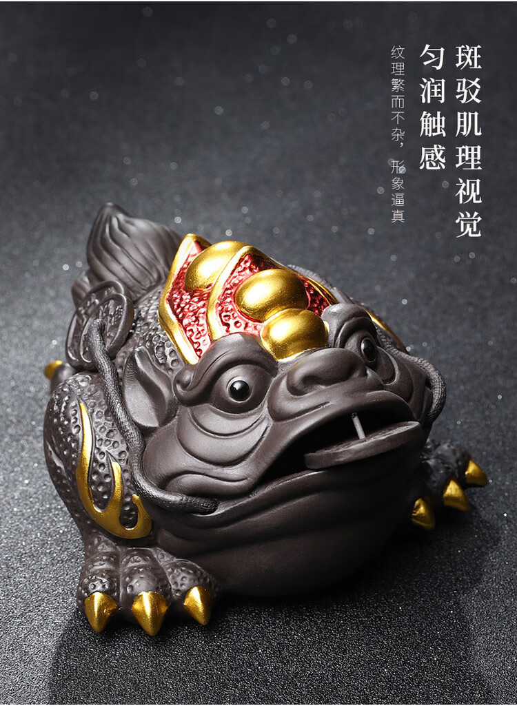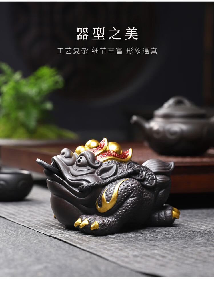 The stars are all full. Purple sand golden toad tea pet can be raised and played with tea table accessories. Tea table three-legged golden toad ornaments with golden toad. Purple sand golden toad tea pet - medium