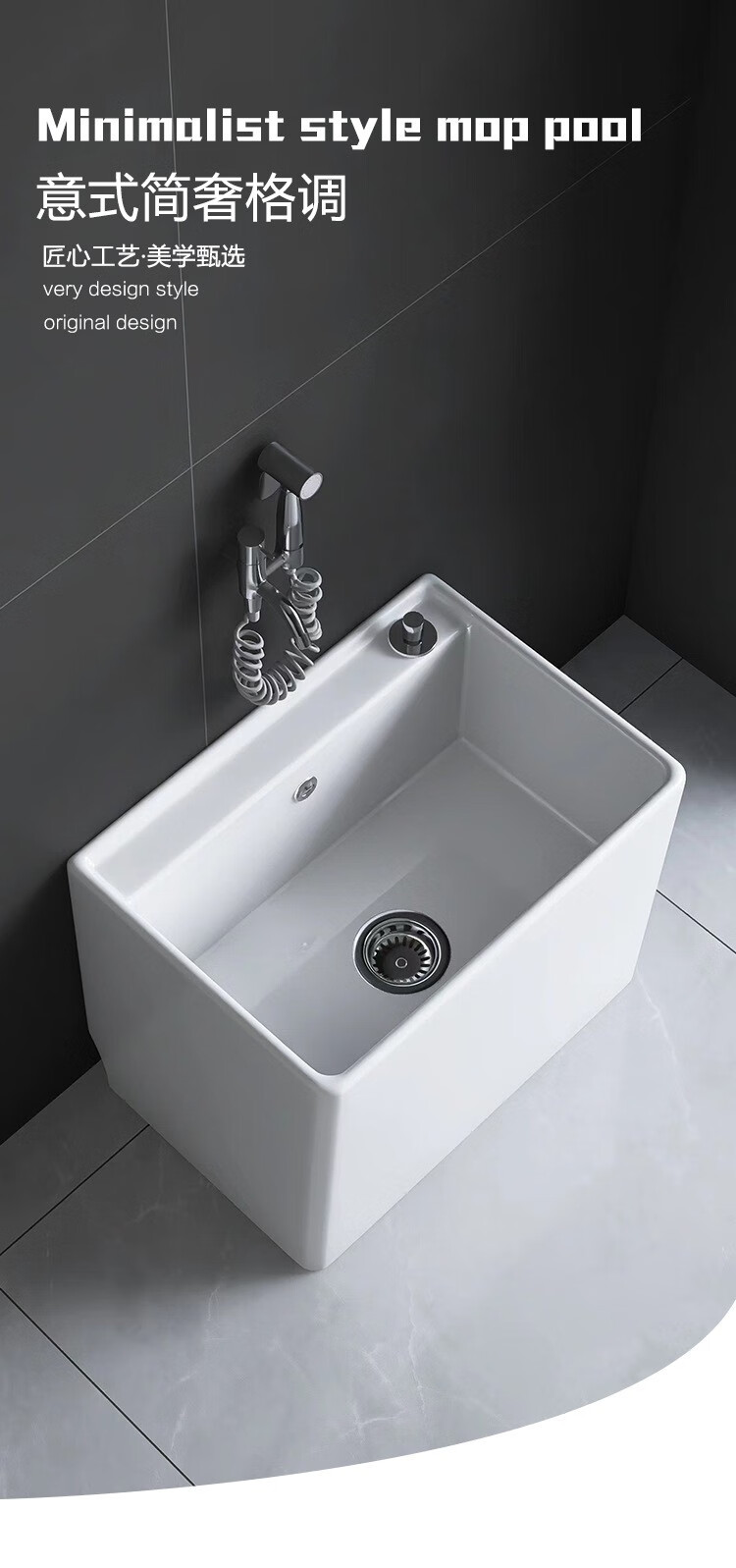 Kaiyue Ceramic Mop Pool Home Balcony Washing Mop Pool with Overflow Outdoor Floor-standing Side Drainage Mop Pool Oval Model Taiwan-controlled Drainage + Filter Basket Length 47