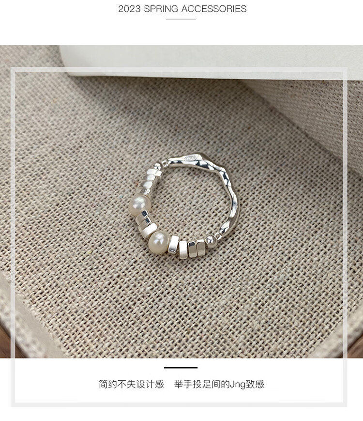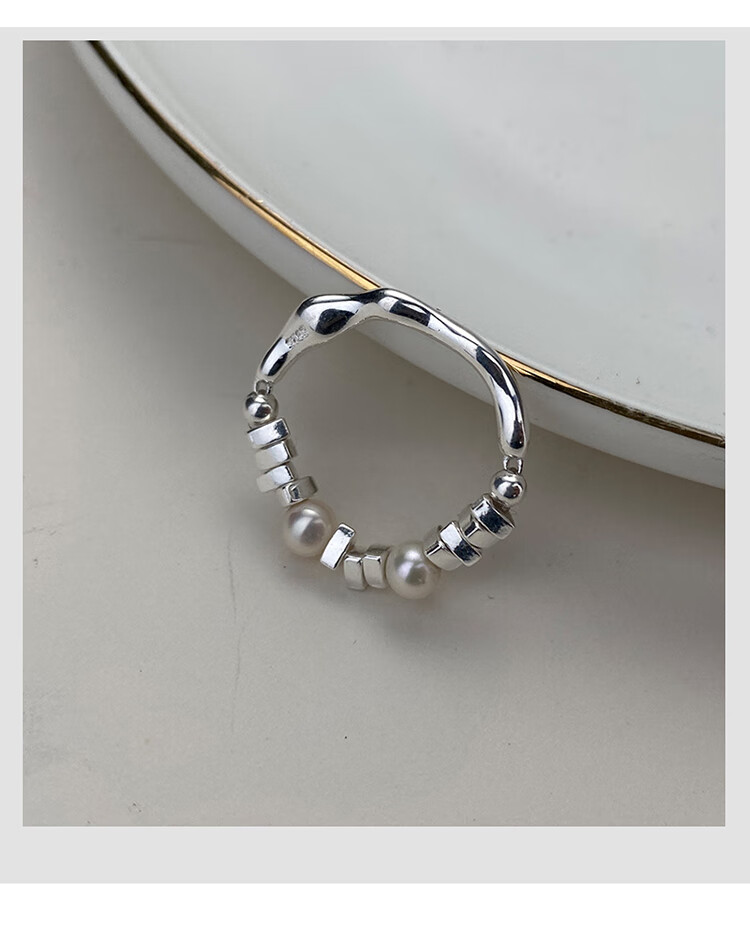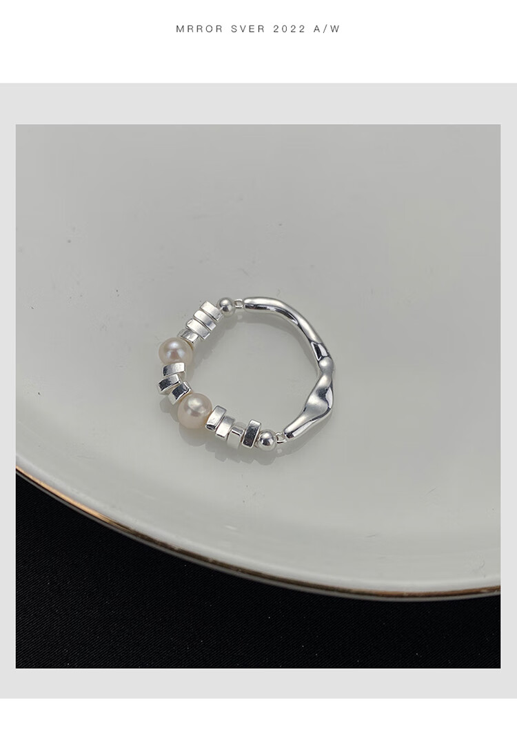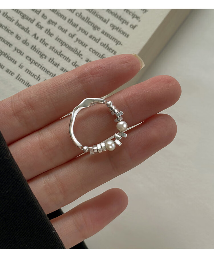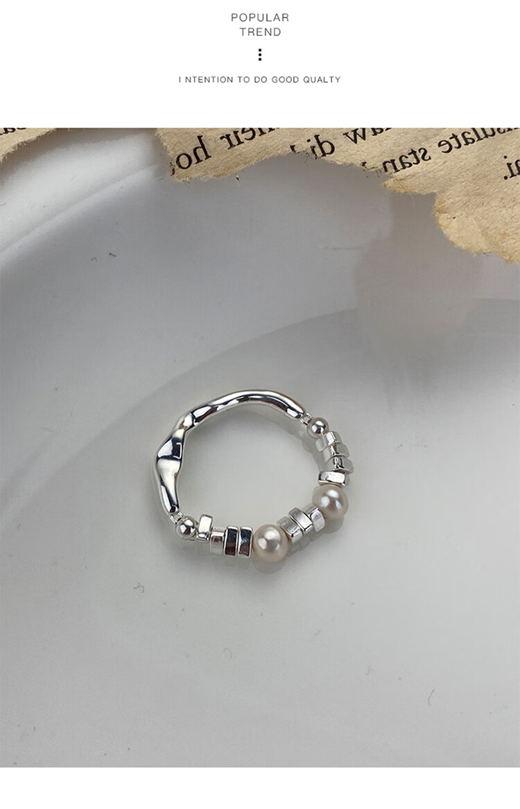 LnieerS925 Silver Broken Silver Pearl Ring Women's Light Luxury Niche Design Ring Index Finger High-Quality Ring Ring Broken Silver Pearl Ring (Size Adjustable)
