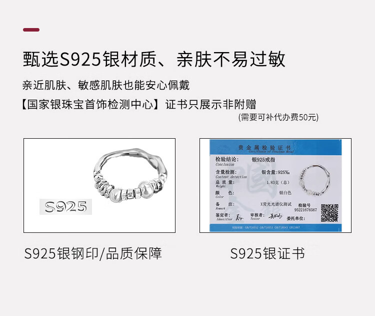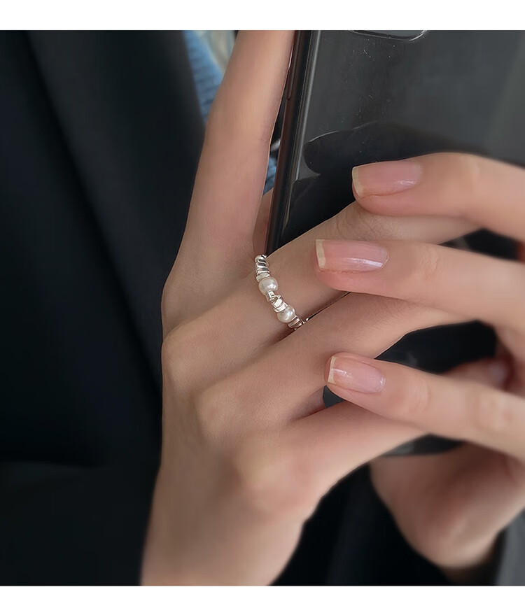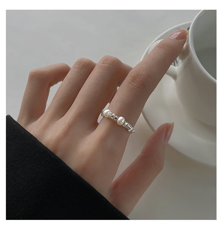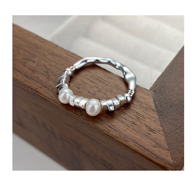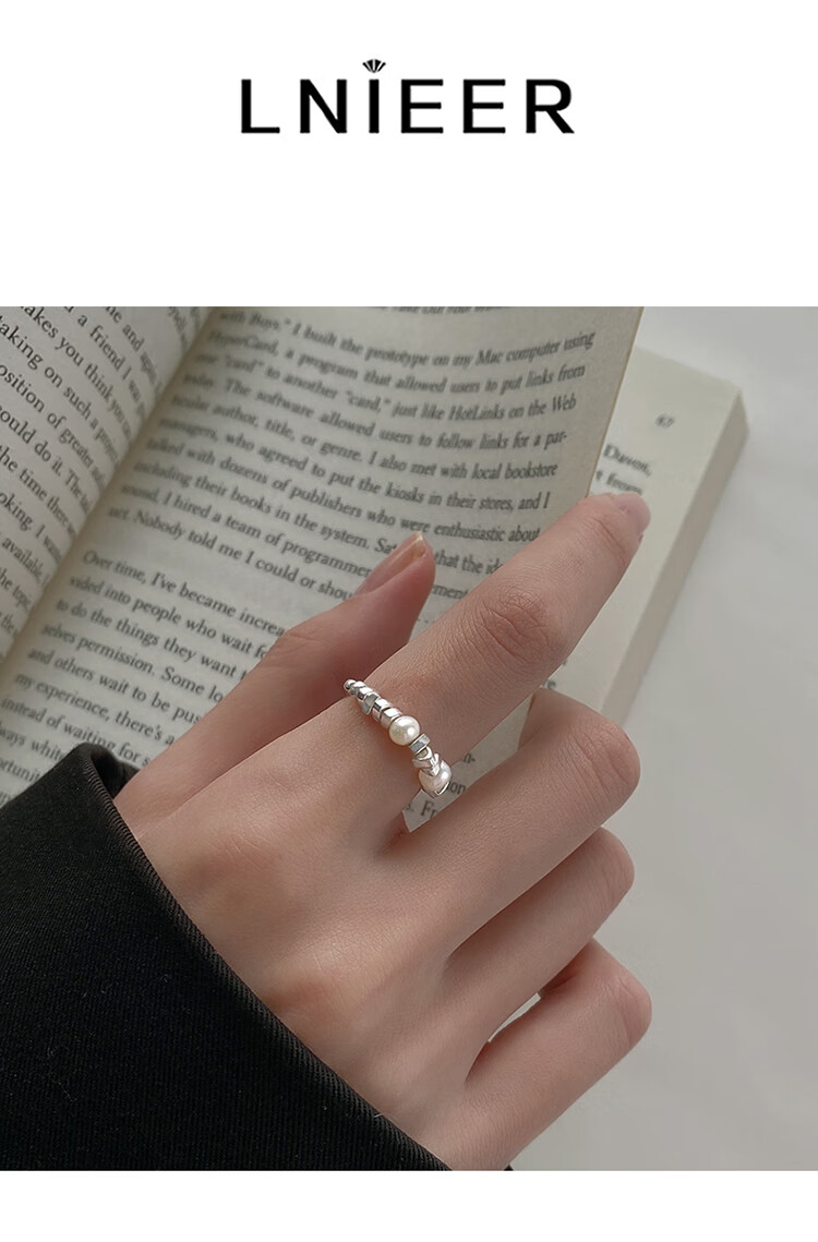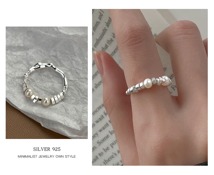 LnieerS925 Silver Broken Silver Pearl Ring Women's Light Luxury Niche Design Ring Index Finger High-Quality Ring Ring Broken Silver Pearl Ring (Size Adjustable)