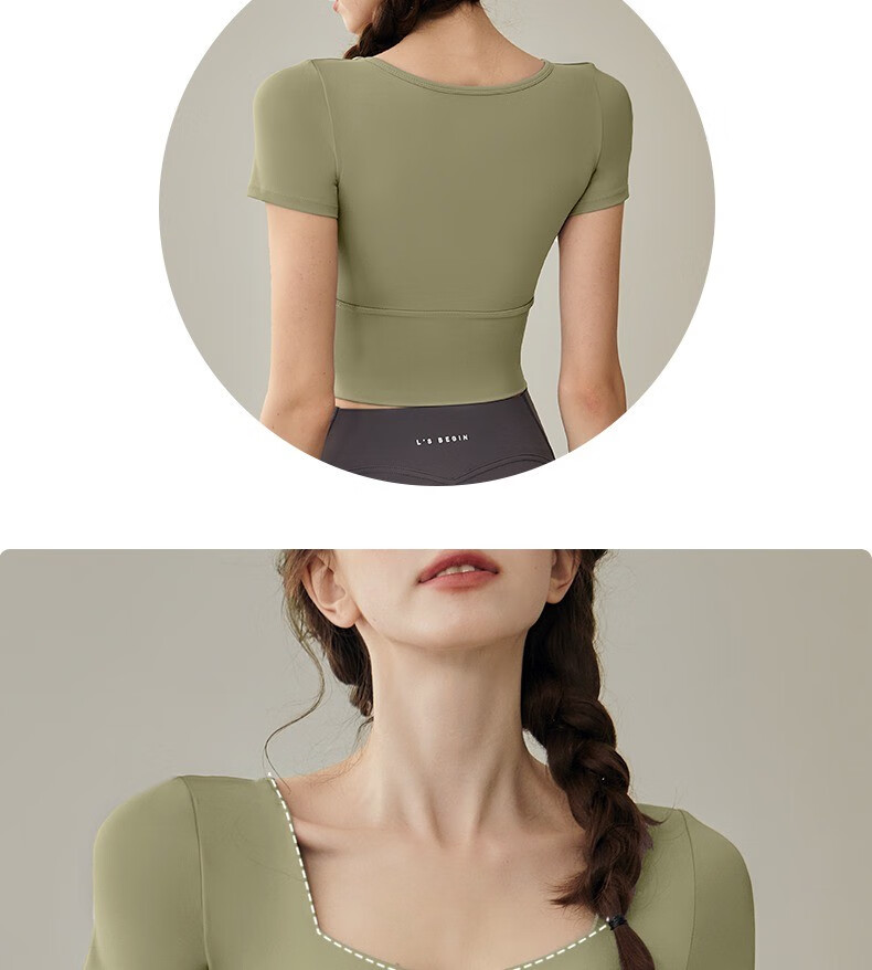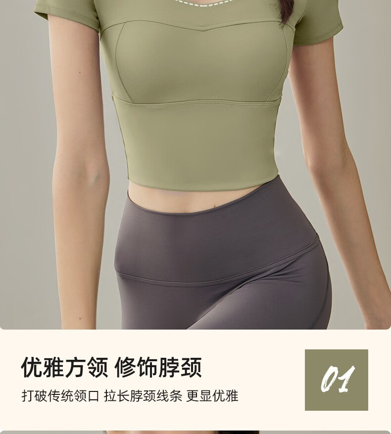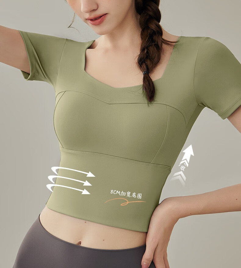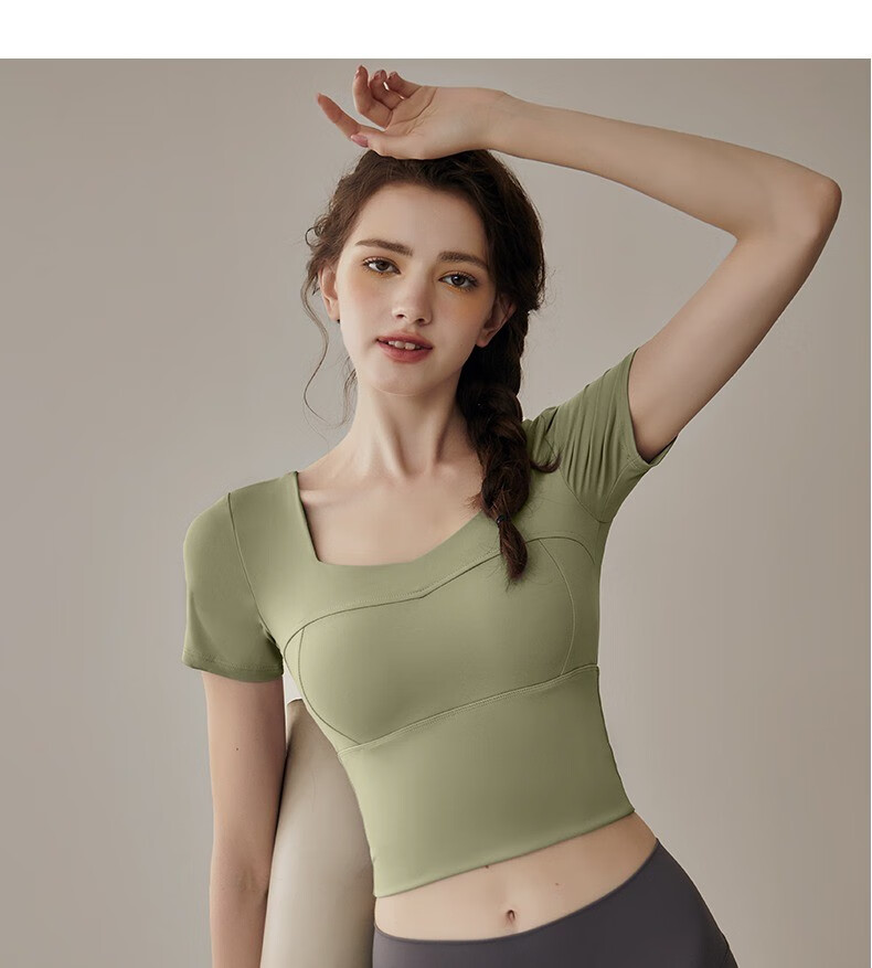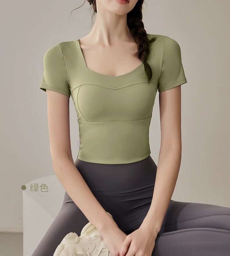 Yuebu Yoga Wear Set Women's Pilates Training Wear Quick-Drying Clothes Fitness Top Running Sports Short-Sleeved T-Shirt Summer Green S (Recommended 85-95Jin Jin equals 0.5kg)
