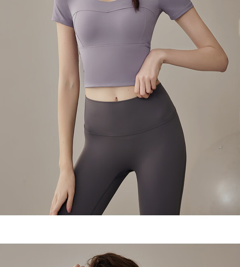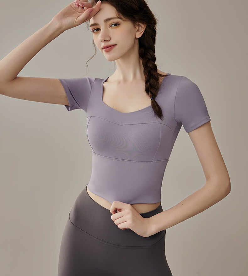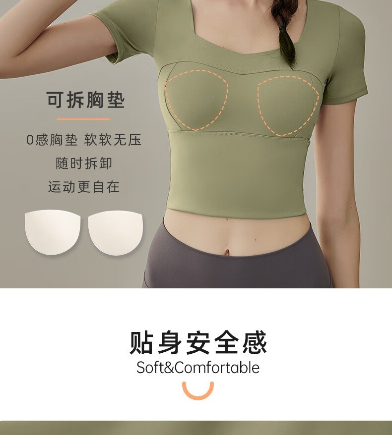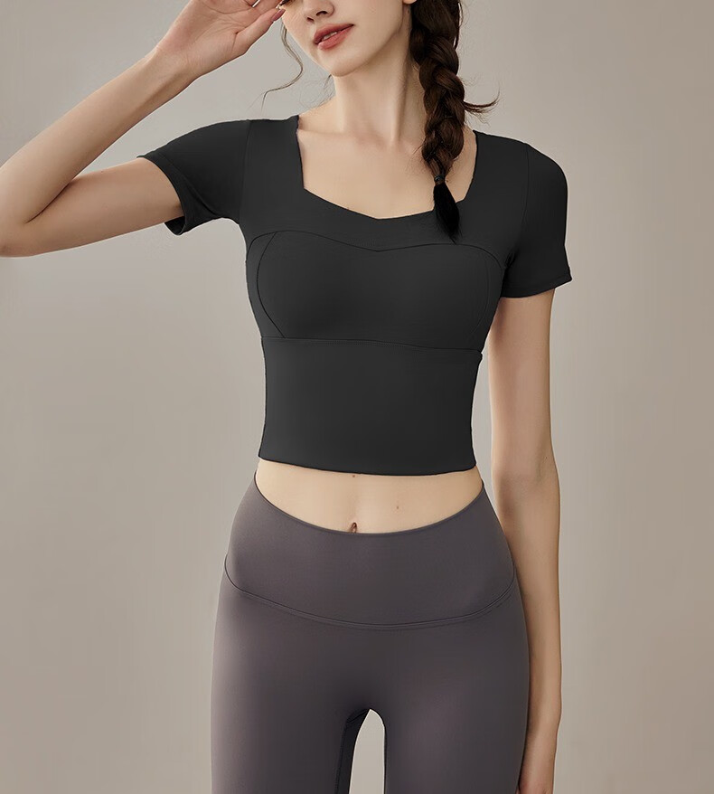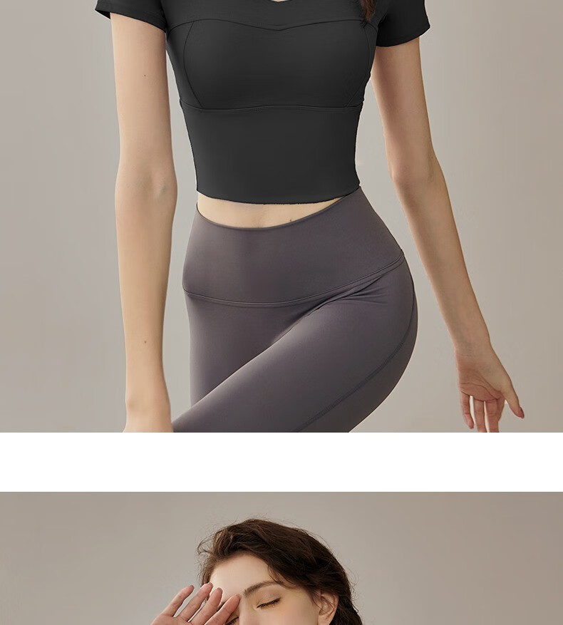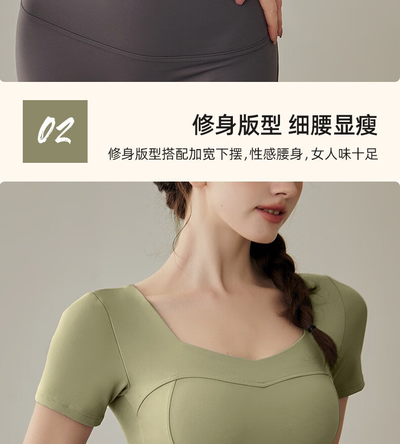 Yuebu Yoga Wear Set Women's Pilates Training Wear Quick-Drying Clothes Fitness Top Running Sports Short-Sleeved T-Shirt Summer Green S (Recommended 85-95Jin Jin equals 0.5kg)