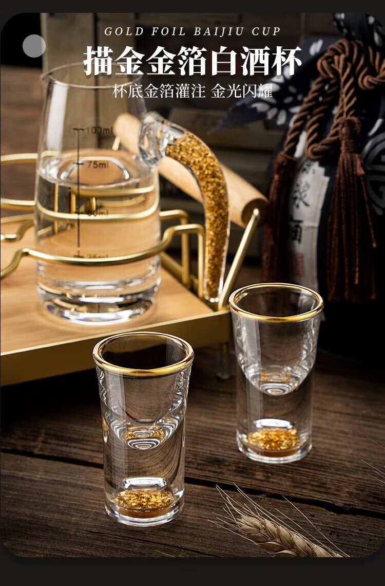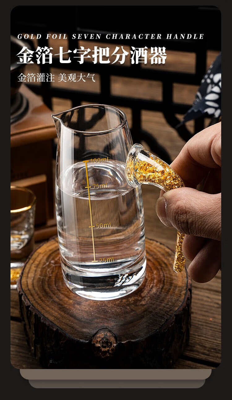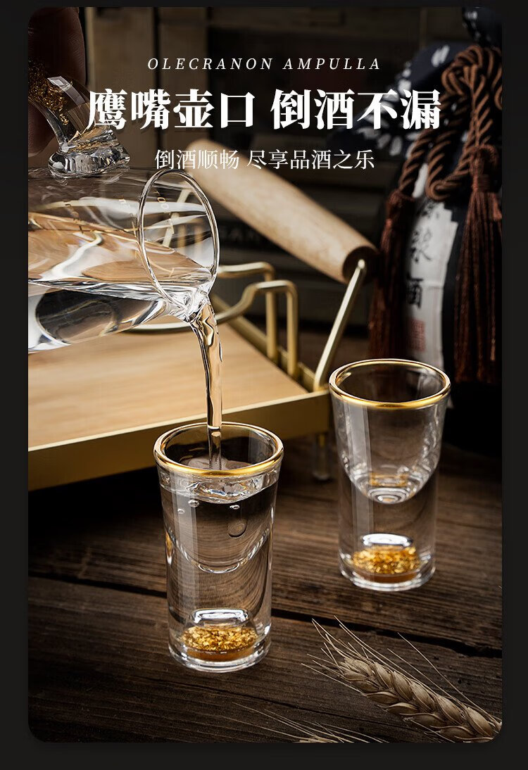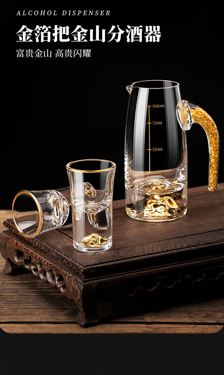 Luxury Flowers crystal glass white wine cup wine divider wine jug decanter pouring wine jug set red wine Chinese style wine jug wine set seven-character gold foil handle 100ml Jinshan wine divider 2 pieces