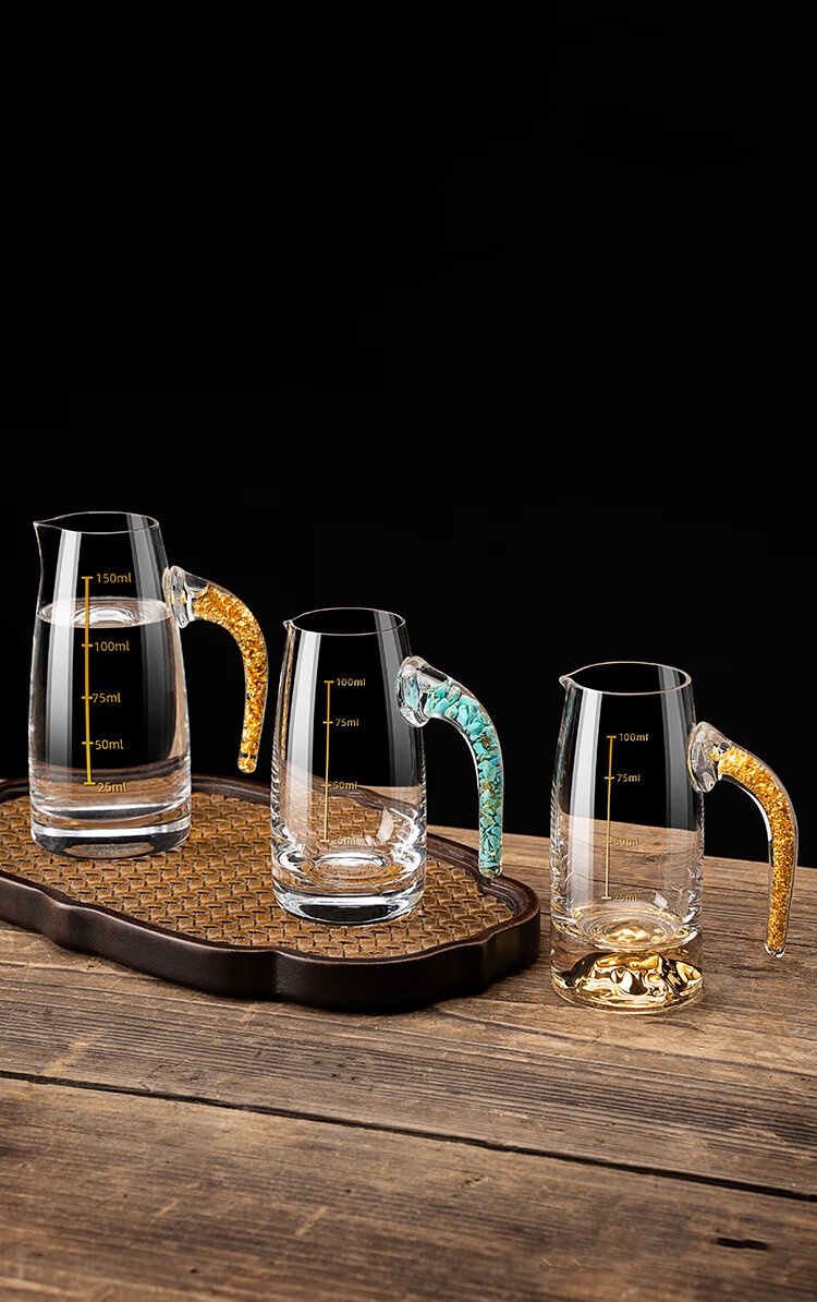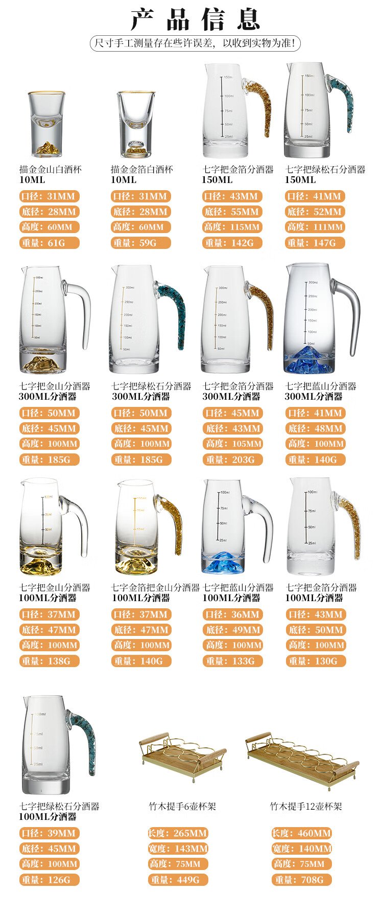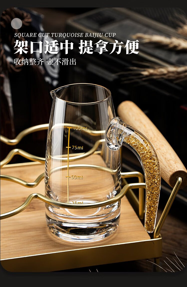 Luxury Flowers crystal glass white wine cup wine divider wine jug decanter pouring wine jug set red wine Chinese style wine jug wine set seven-character gold foil handle 100ml Jinshan wine divider 2 pieces