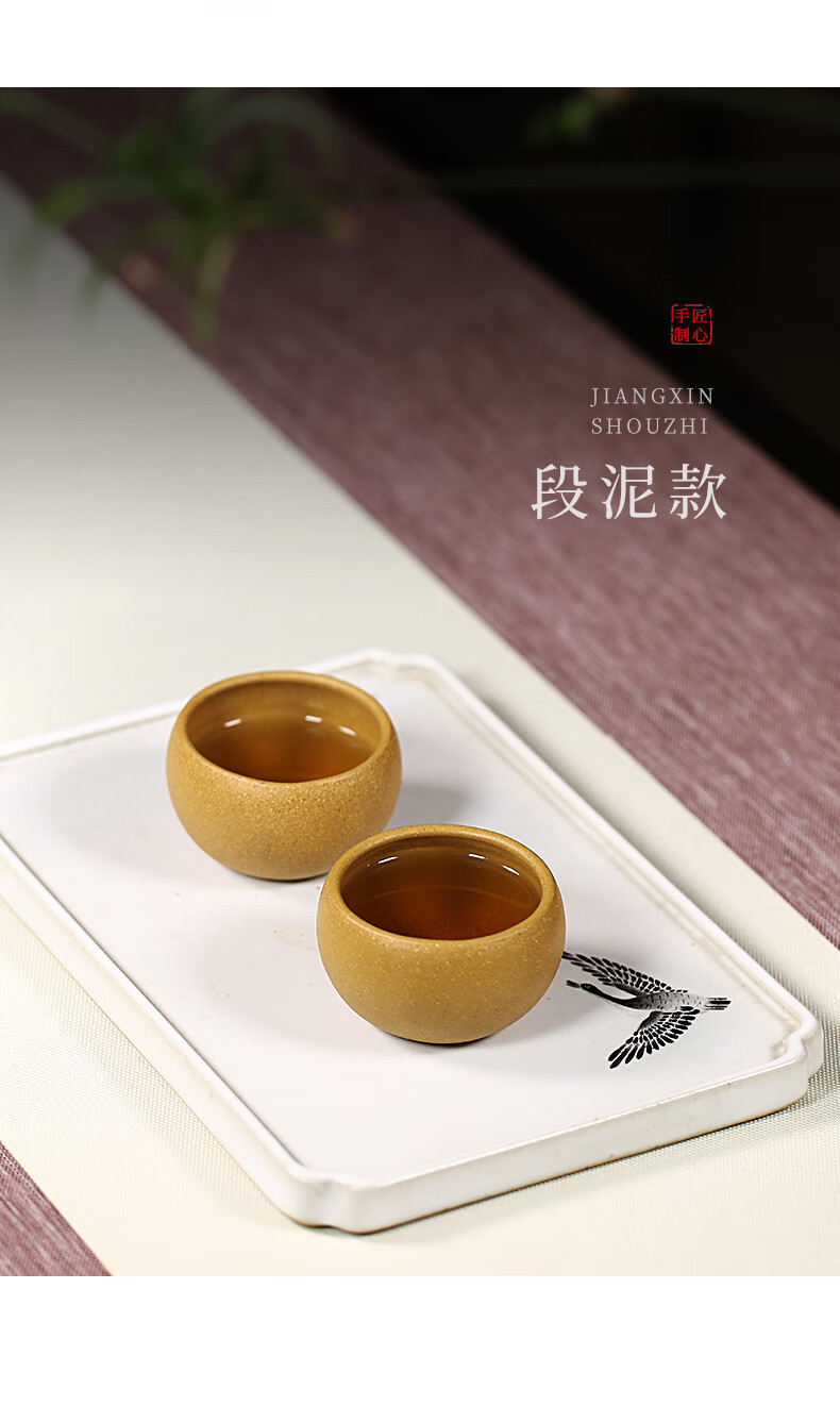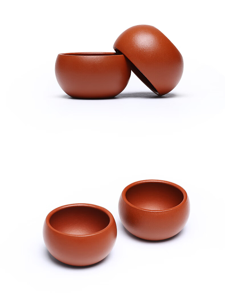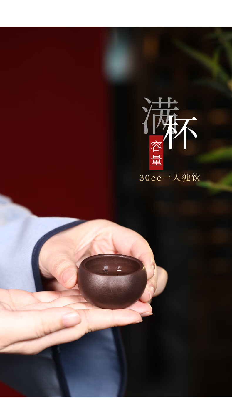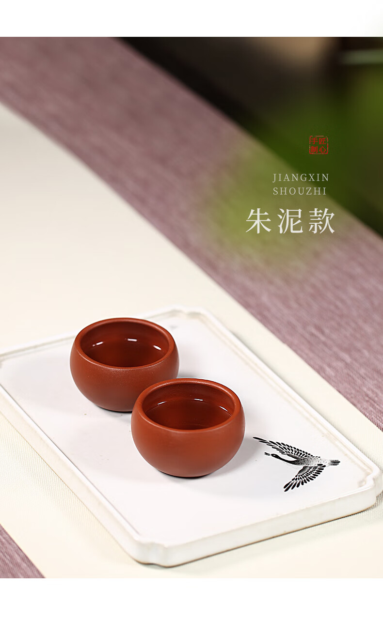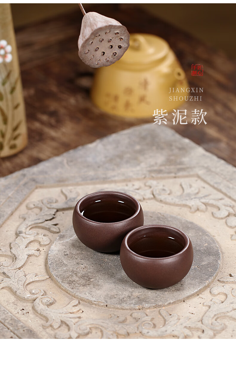 Hidden Pot World Yixing Purple Clay Tea Cup Original Mineral Purple Clay Matching Pot Special Small Mouth Tea Cup Small Cup Master Cup Yuanbao Matching Cup Purple Clay Style Matching Cup