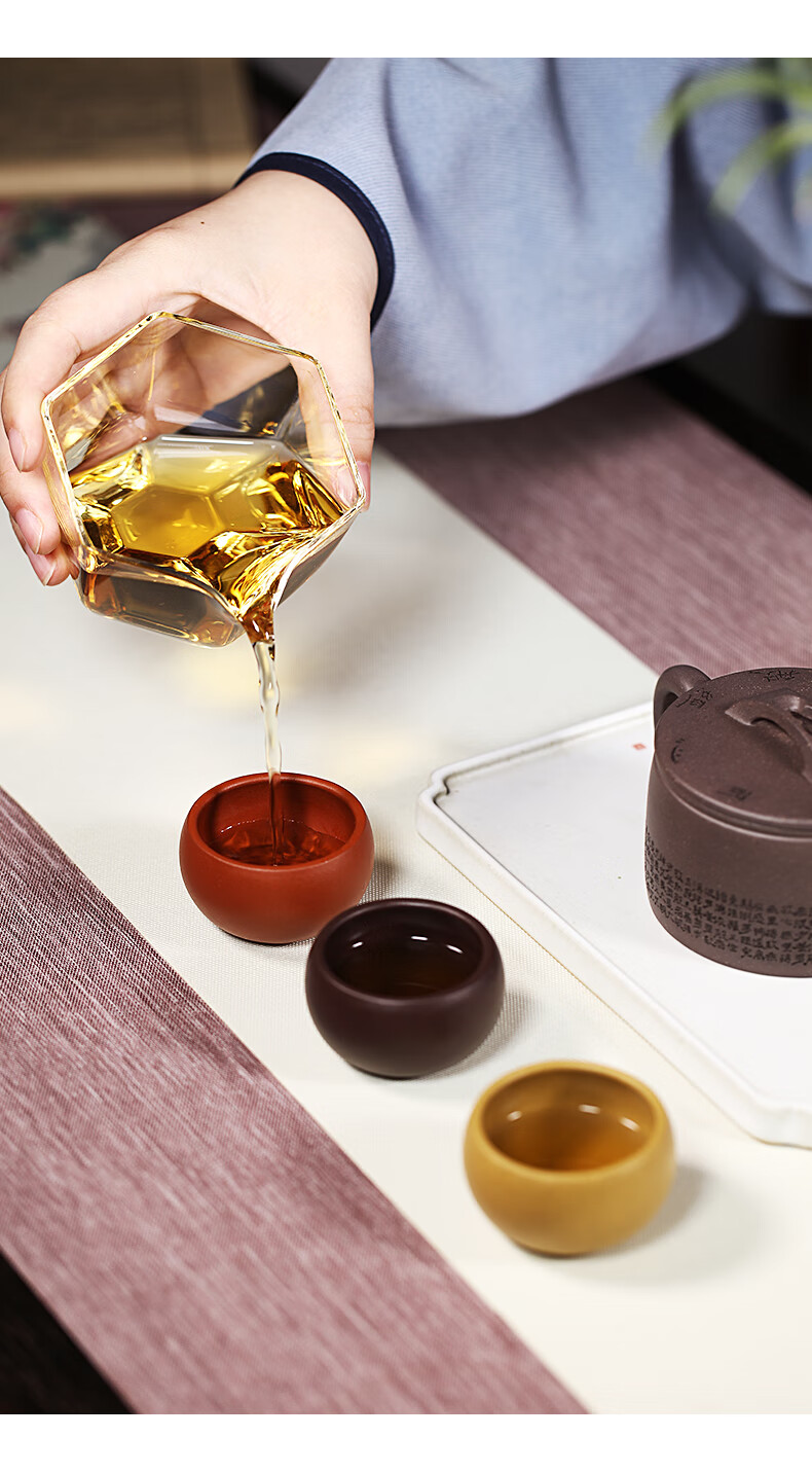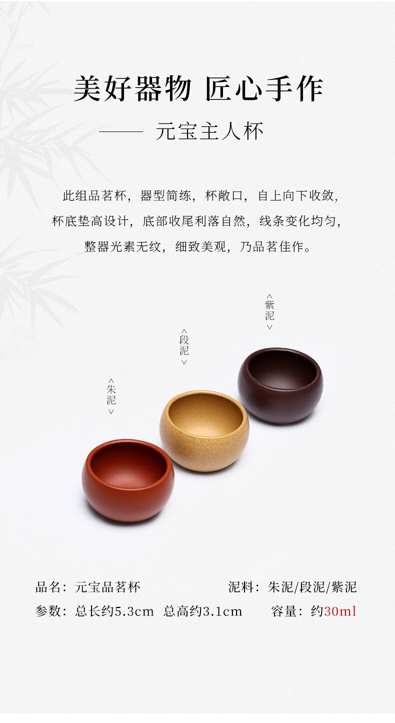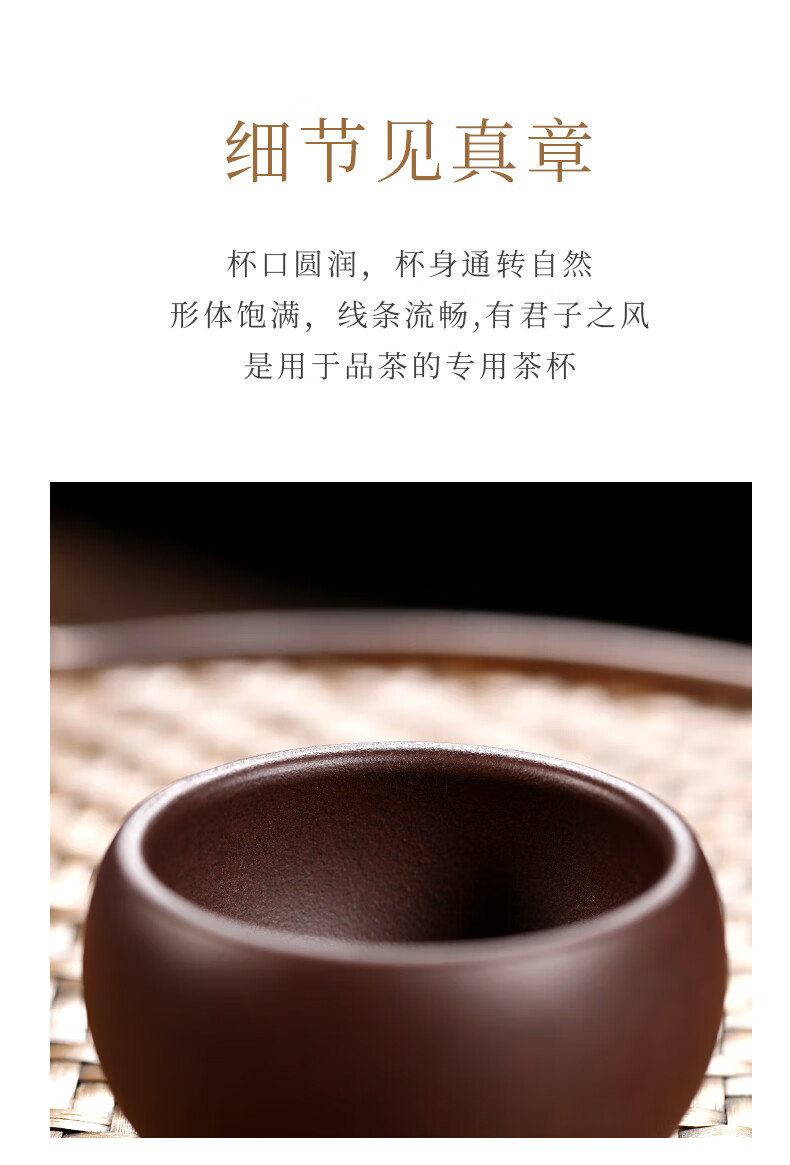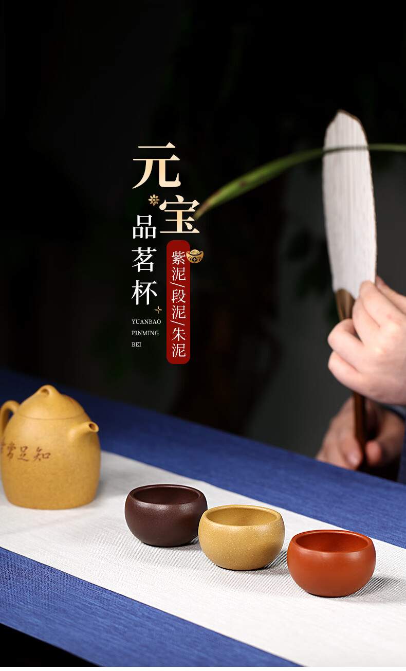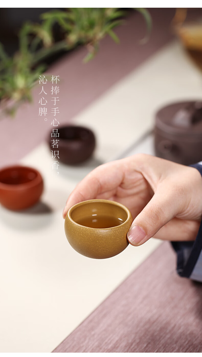 Hidden Pot World Yixing Purple Clay Tea Cup Original Mineral Purple Clay Matching Pot Special Small Mouth Tea Cup Small Cup Master Cup Yuanbao Matching Cup Purple Clay Style Matching Cup