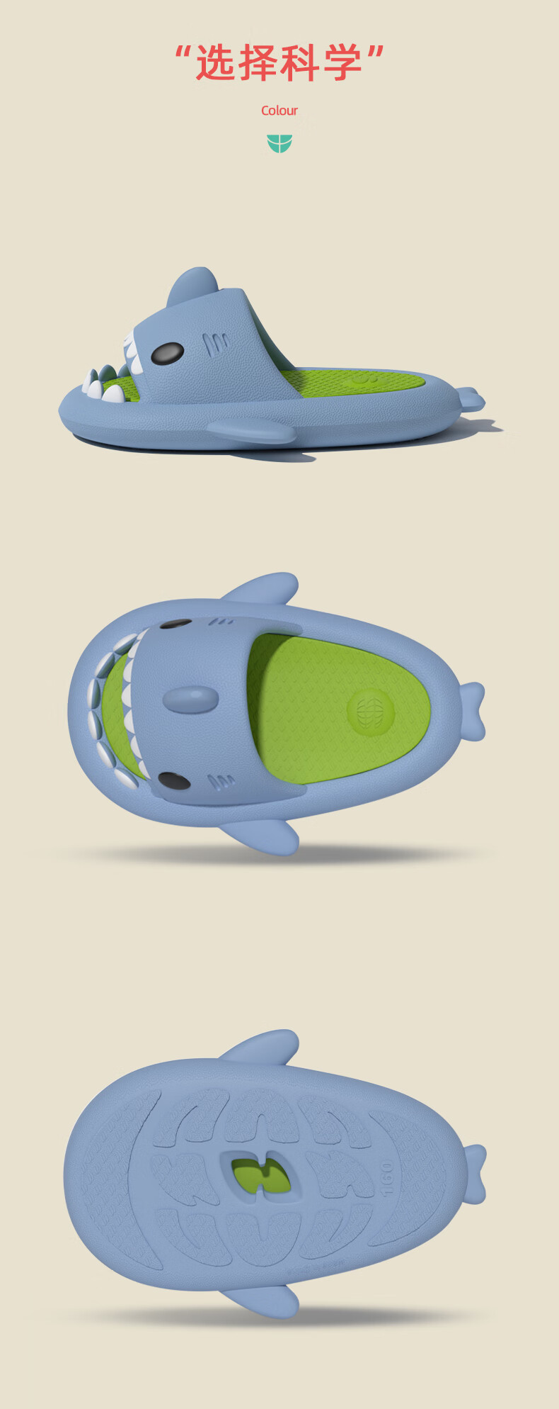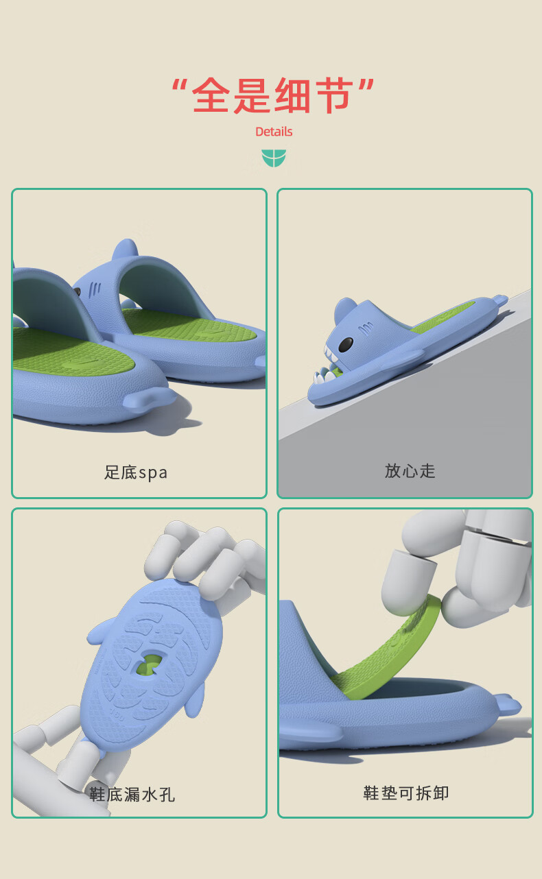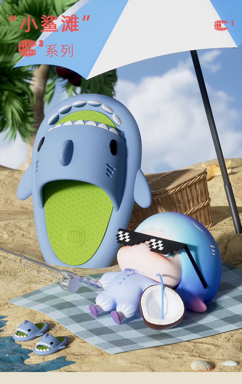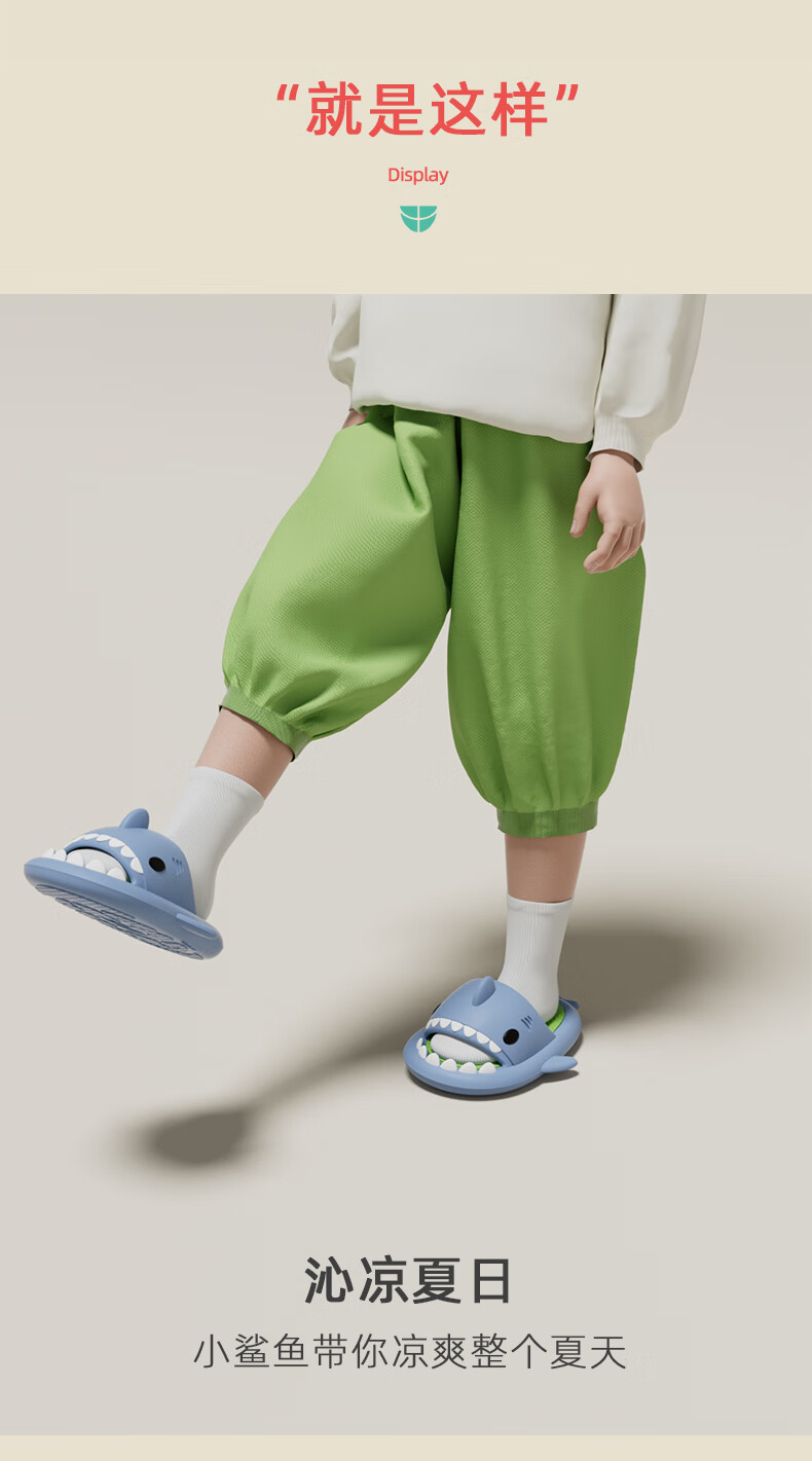 Babycrayon shark children's slippers summer boys two-color non-slip bathing parent-child slippers cartoon home girl baby slippers summer small calcium blue 20 cm inner length 200 suitable for feet 19.5cm long