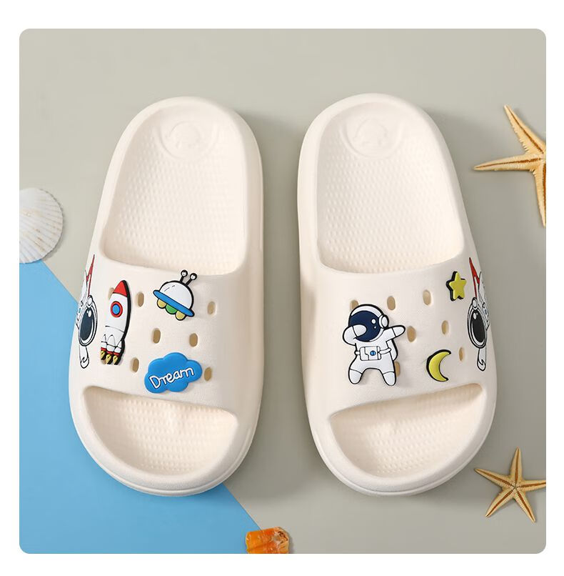 G.duck little yellow duck children's slippers boys and girls summer non-slip middle and large children's home indoor baby girl slippers off-white aircraft car 26 27 (inner length about 17.5)