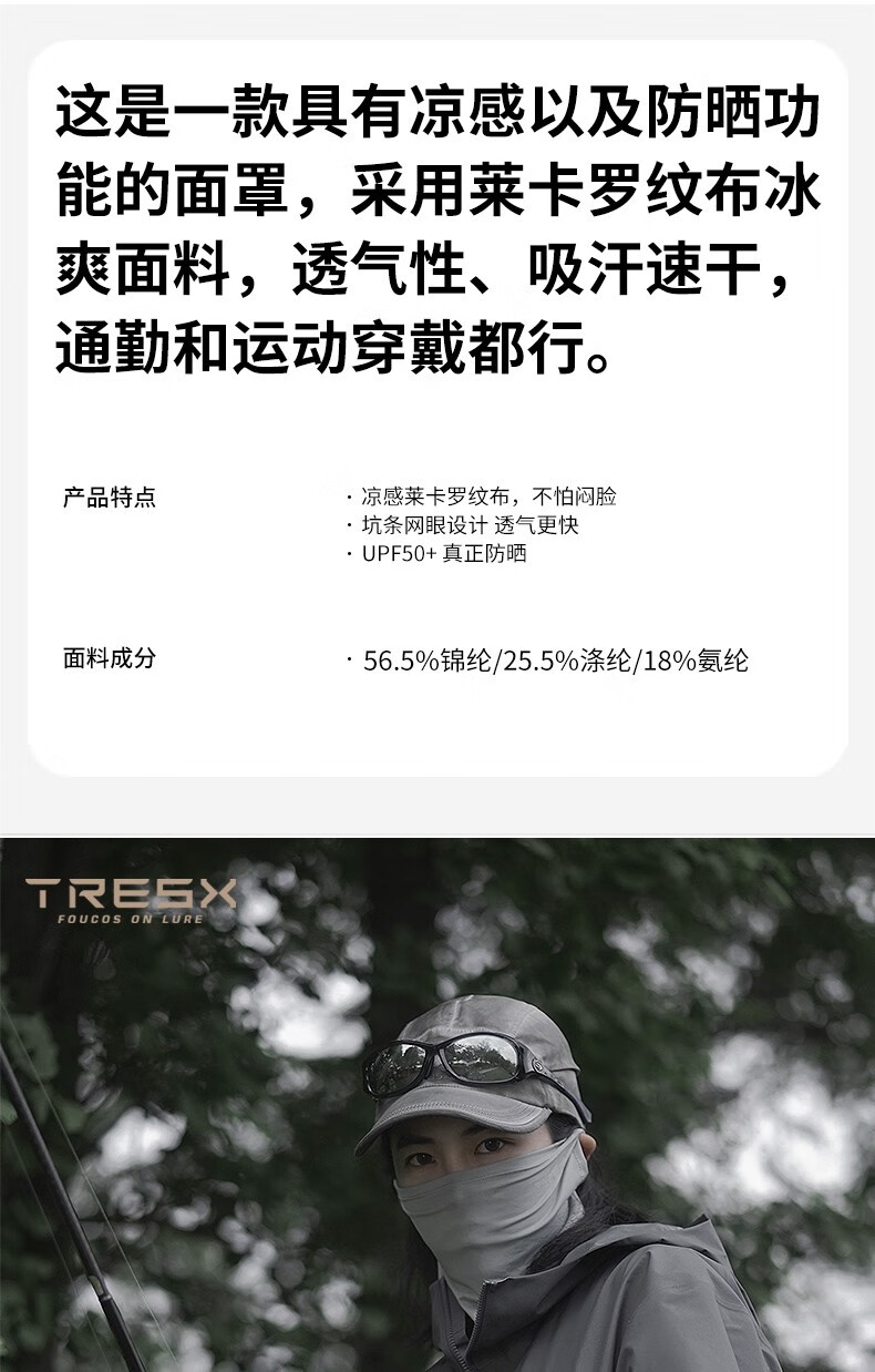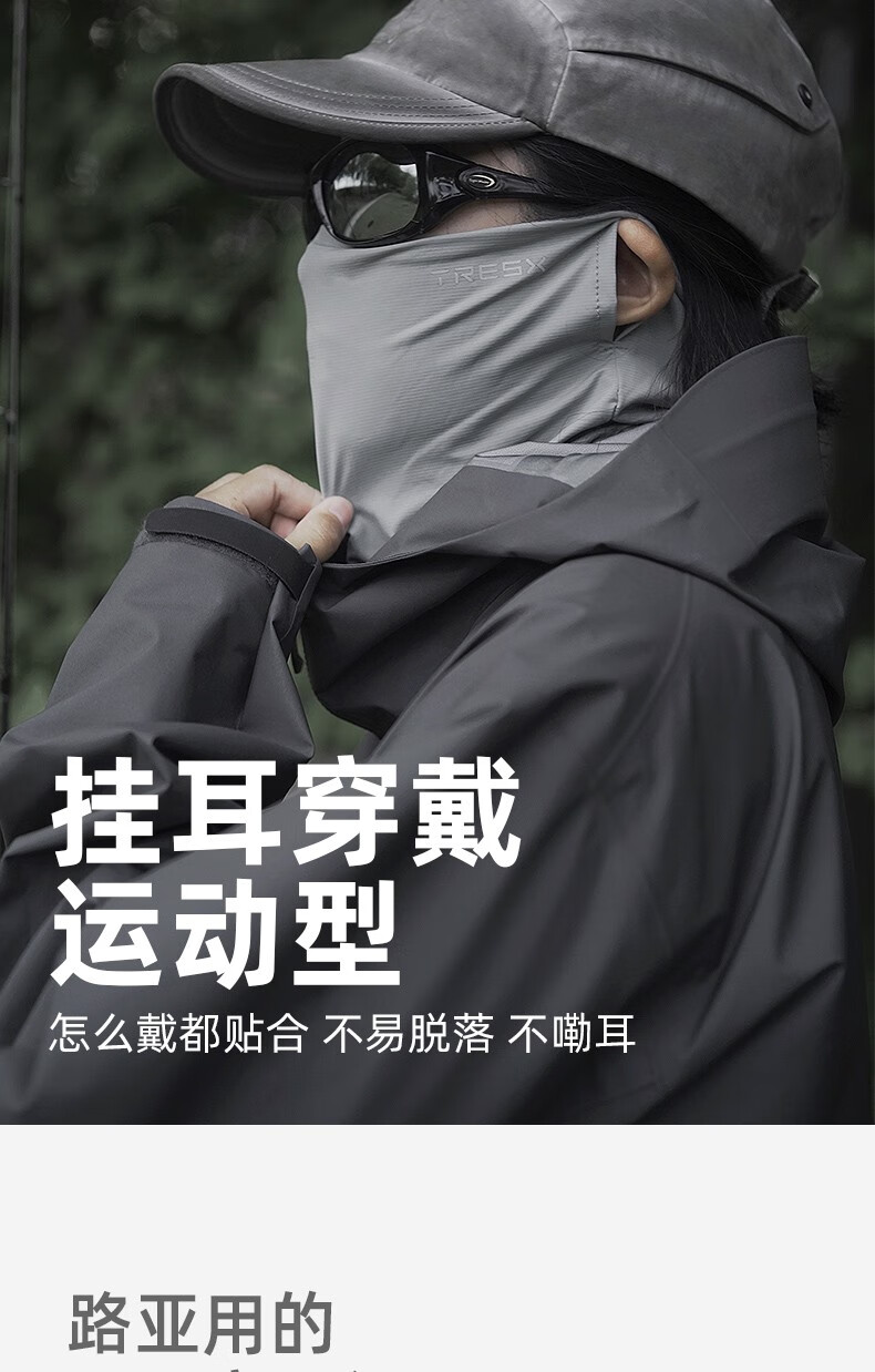 TRESX anti-UV sun protection face mask hanging ear lure fishing sun protection mask thin ice silk scarf outdoor hiking stripes dark black