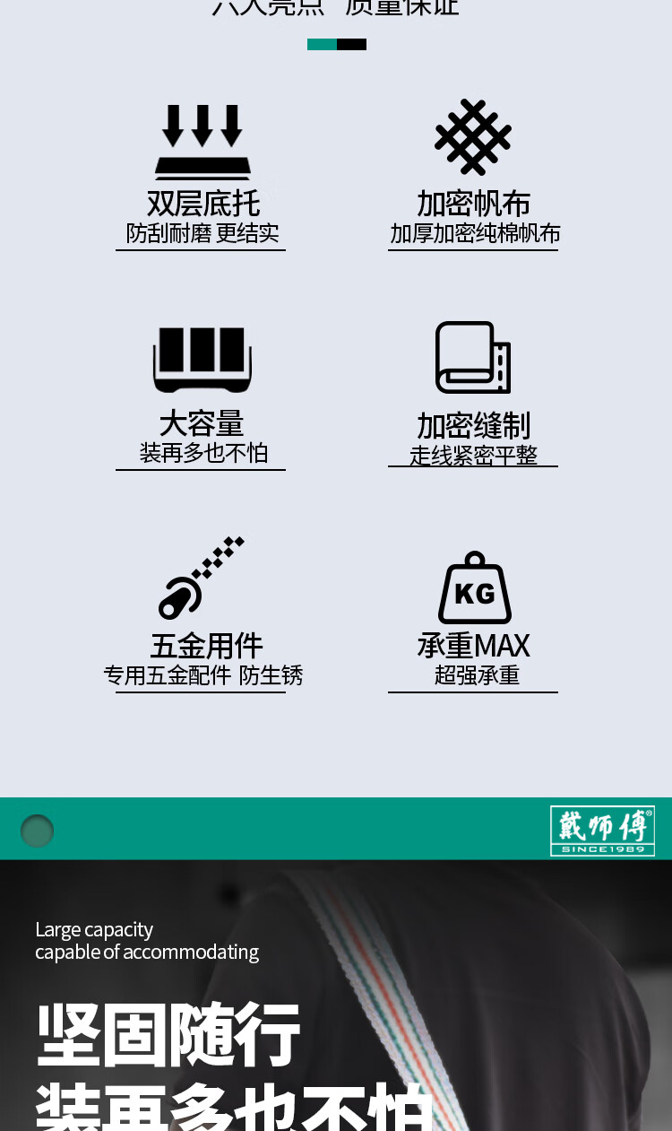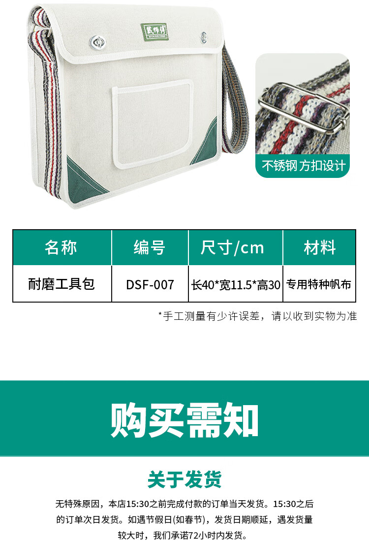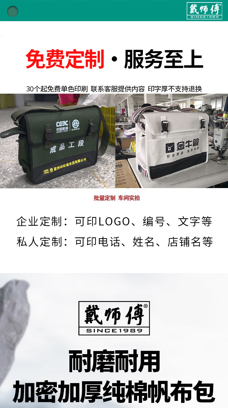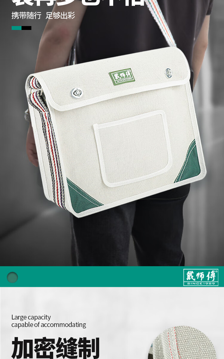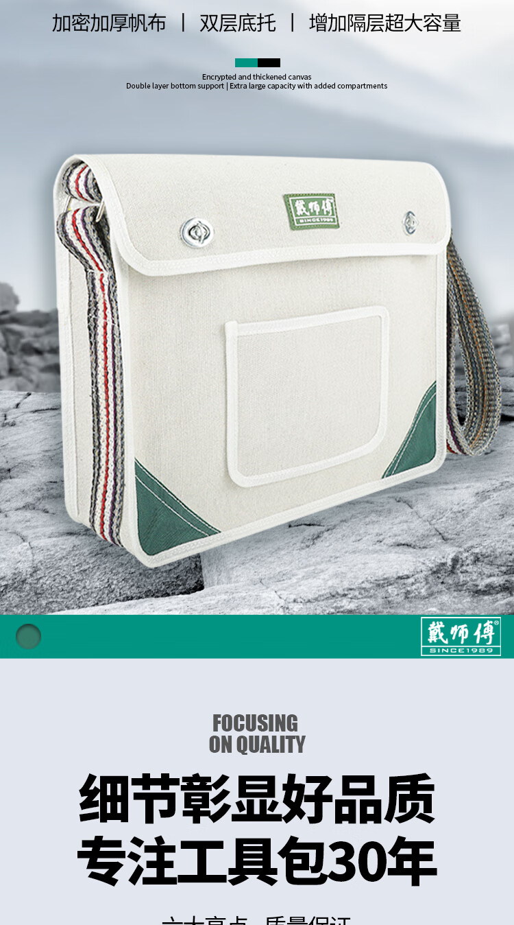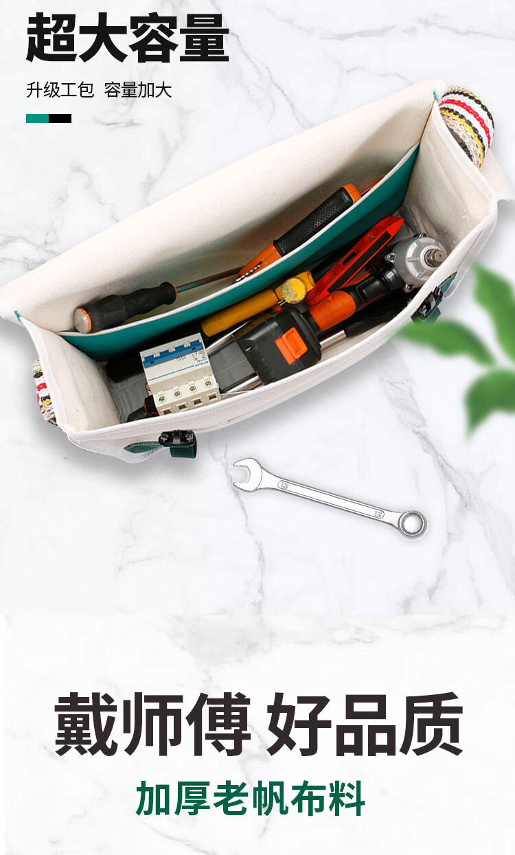 Master Dai large tool bag storage bag large capacity multifunctional repair bag shoulder electrician tool bag tool bag canvas bag DSF-007 white length 40*width 11.5*height 30