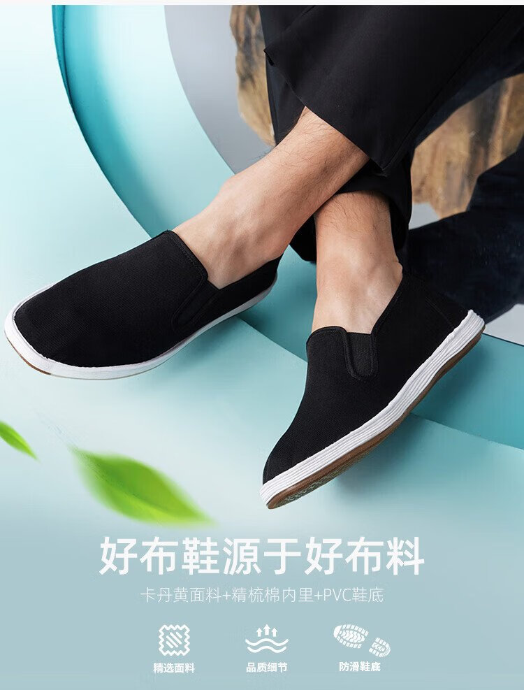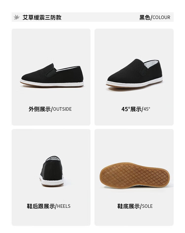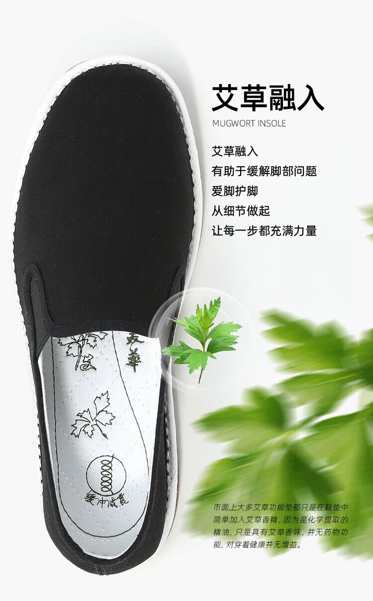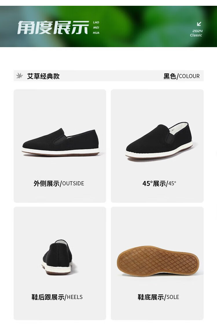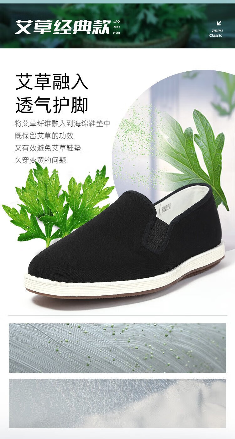 Lao Meihua Old Beijing Mille Layer Cloth Shoes Men's Wormwood Cushioning Three-proof Embroidery Net Red Trendy Shoes Versatile Slip-on Lazy Shoes Wormwood - Black Classic 41