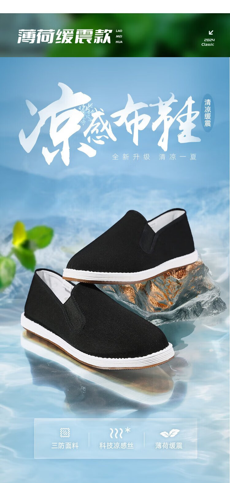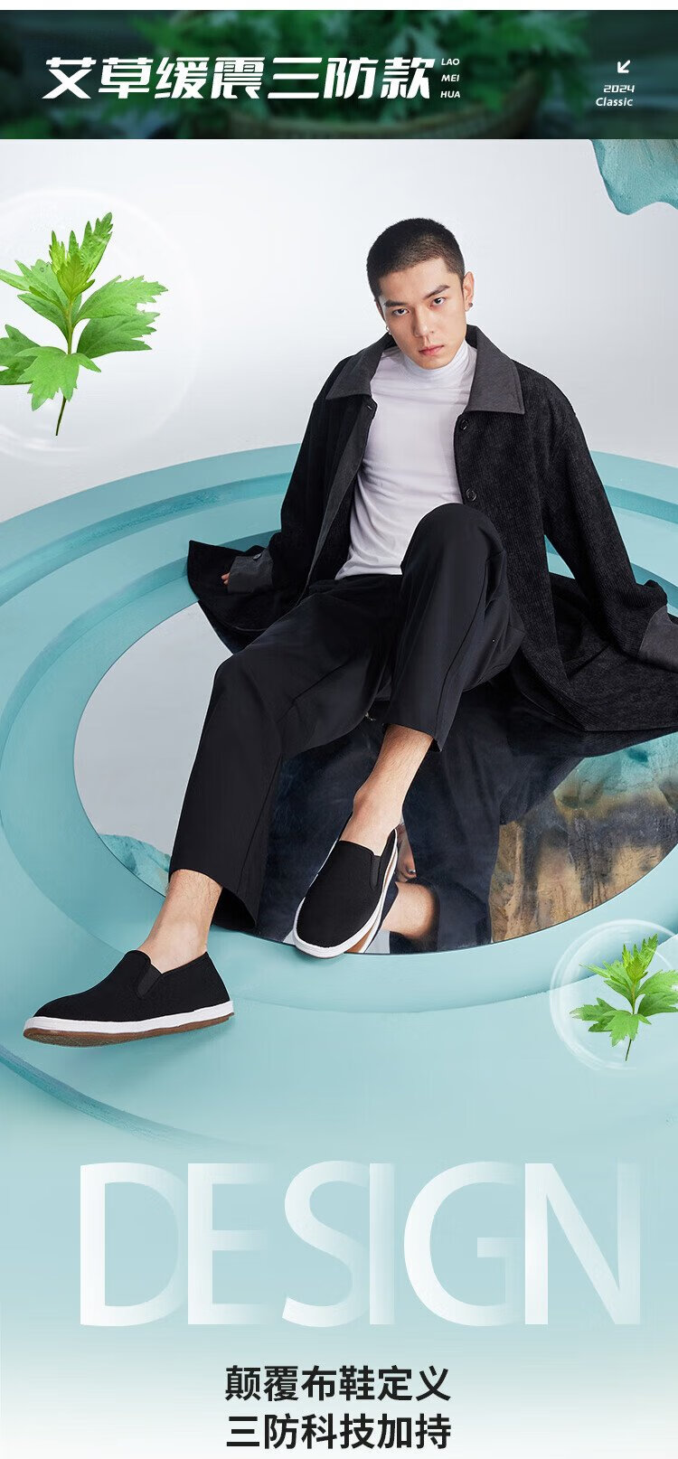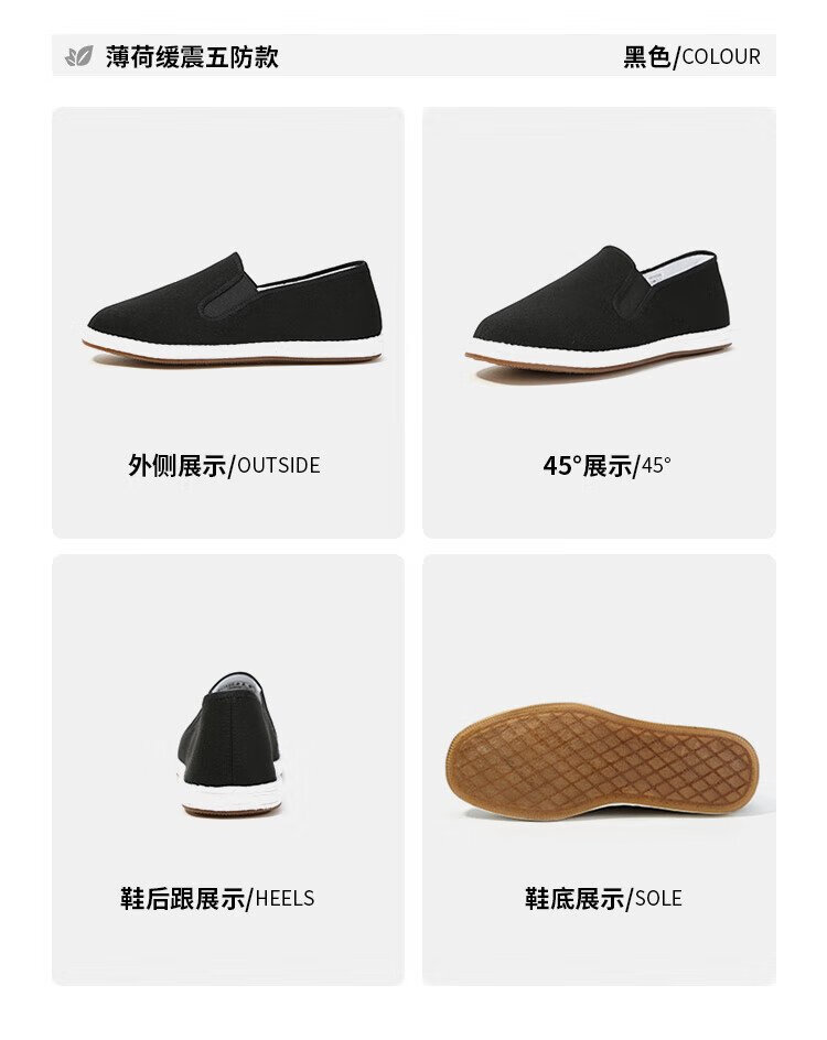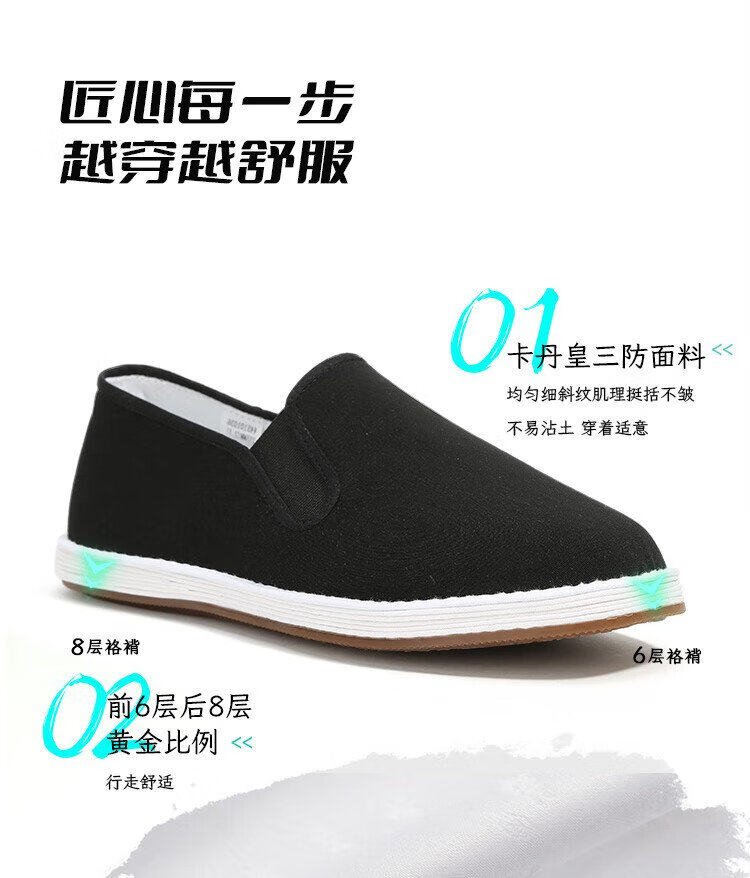 Lao Meihua Old Beijing Mille Layer Cloth Shoes Men's Wormwood Cushioning Three-proof Embroidery Net Red Trendy Shoes Versatile Slip-on Lazy Shoes Wormwood - Black Classic 41
