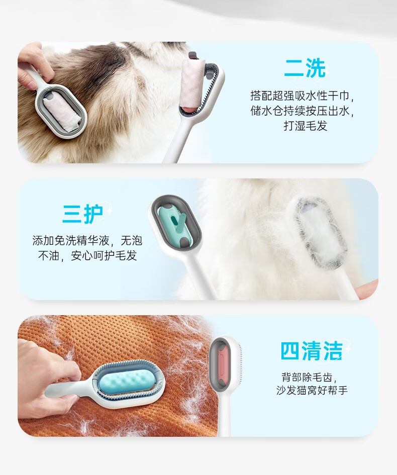 Yuanqi cute thing attraction pet cleaning and hair removal comb water tank cat comb no-wash wipes comb sticky hair comb remove floating hair comb brush with water tank long hair powder (200ml essence + 100 pumps
