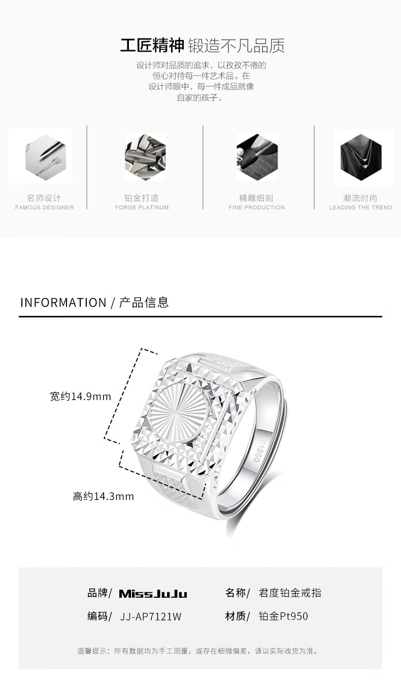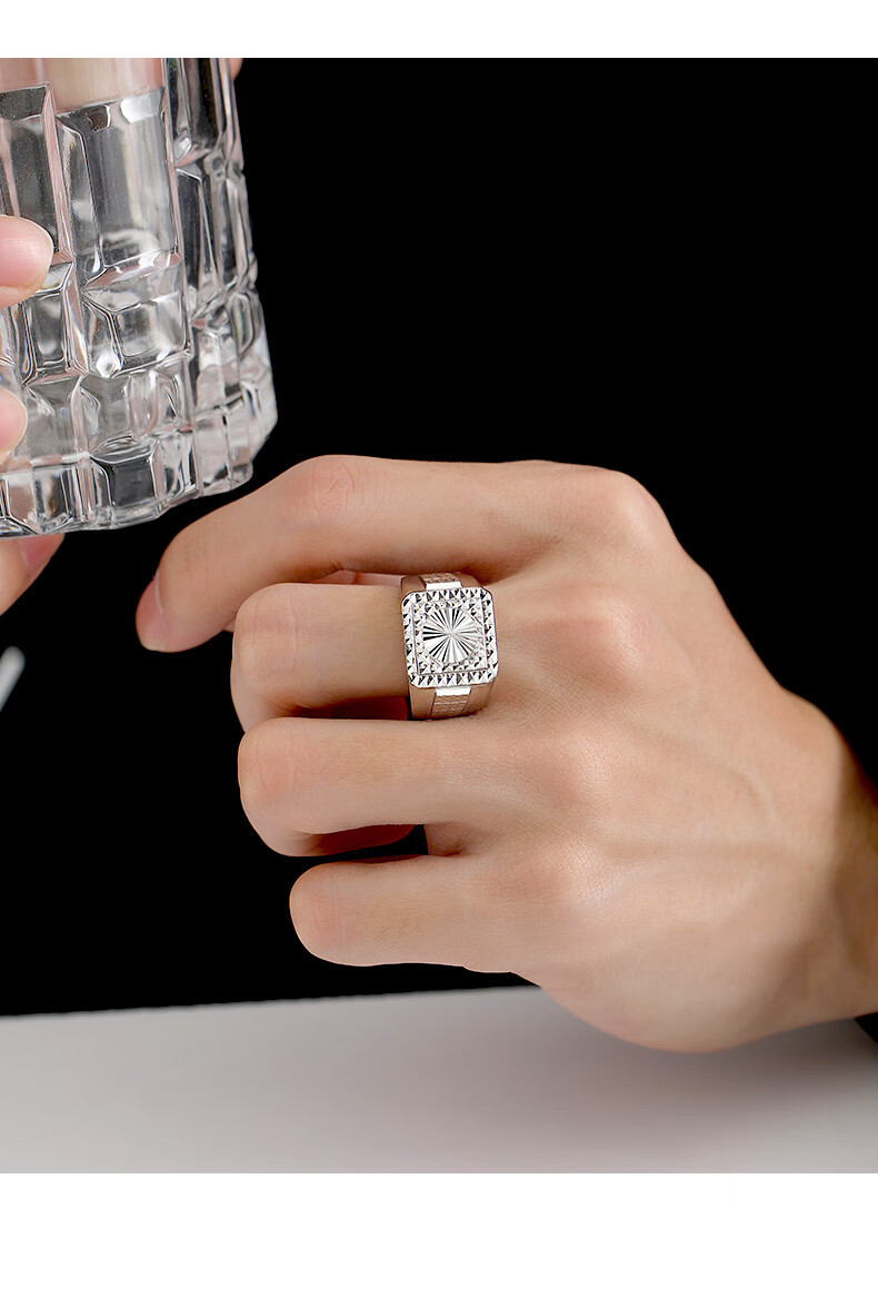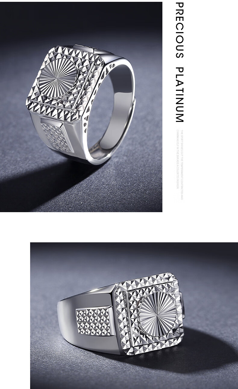 Miss JuJu platinum ring for men pt950, elegant white gold solid wide thick plate ring with adjustable mouth, weight 16.93g