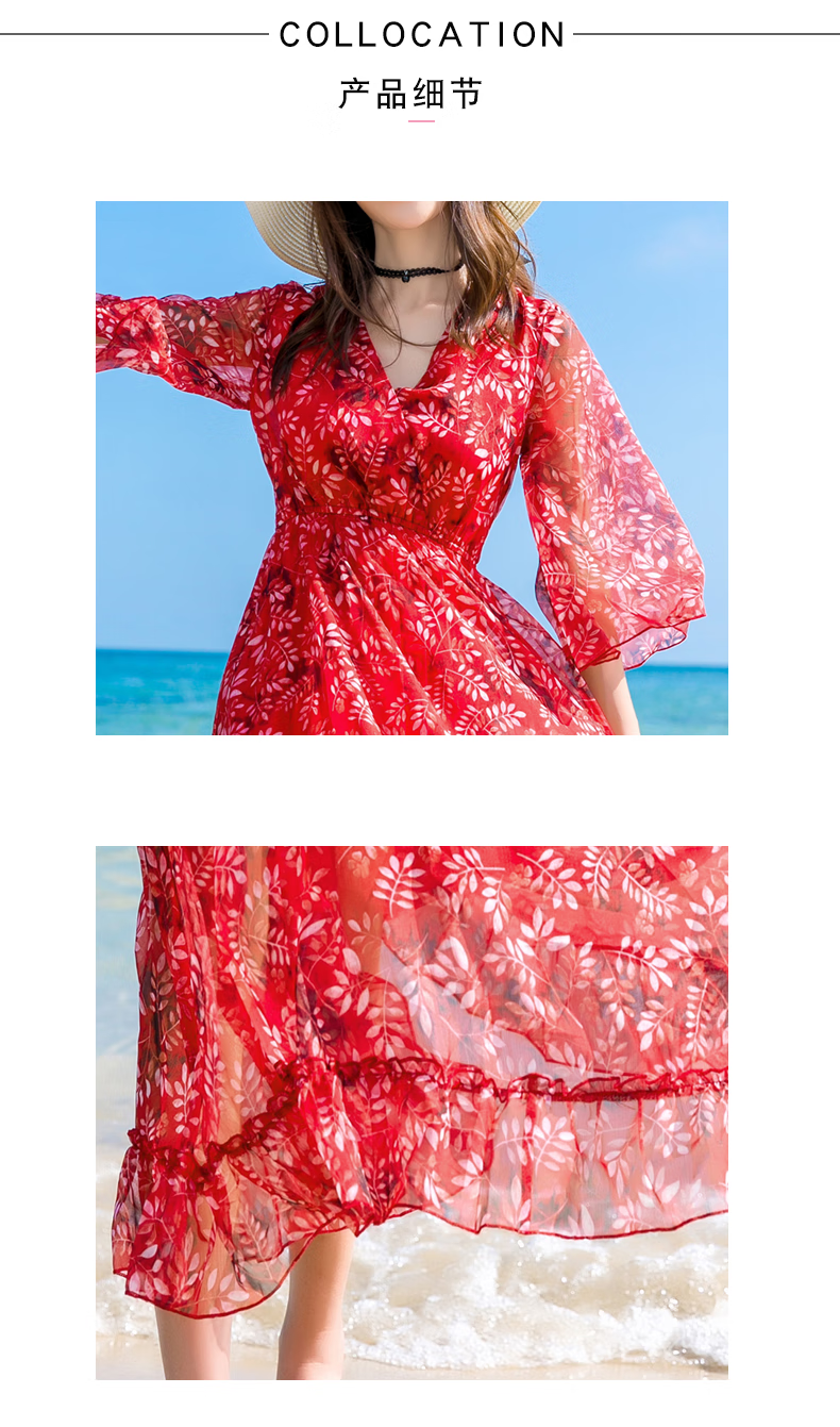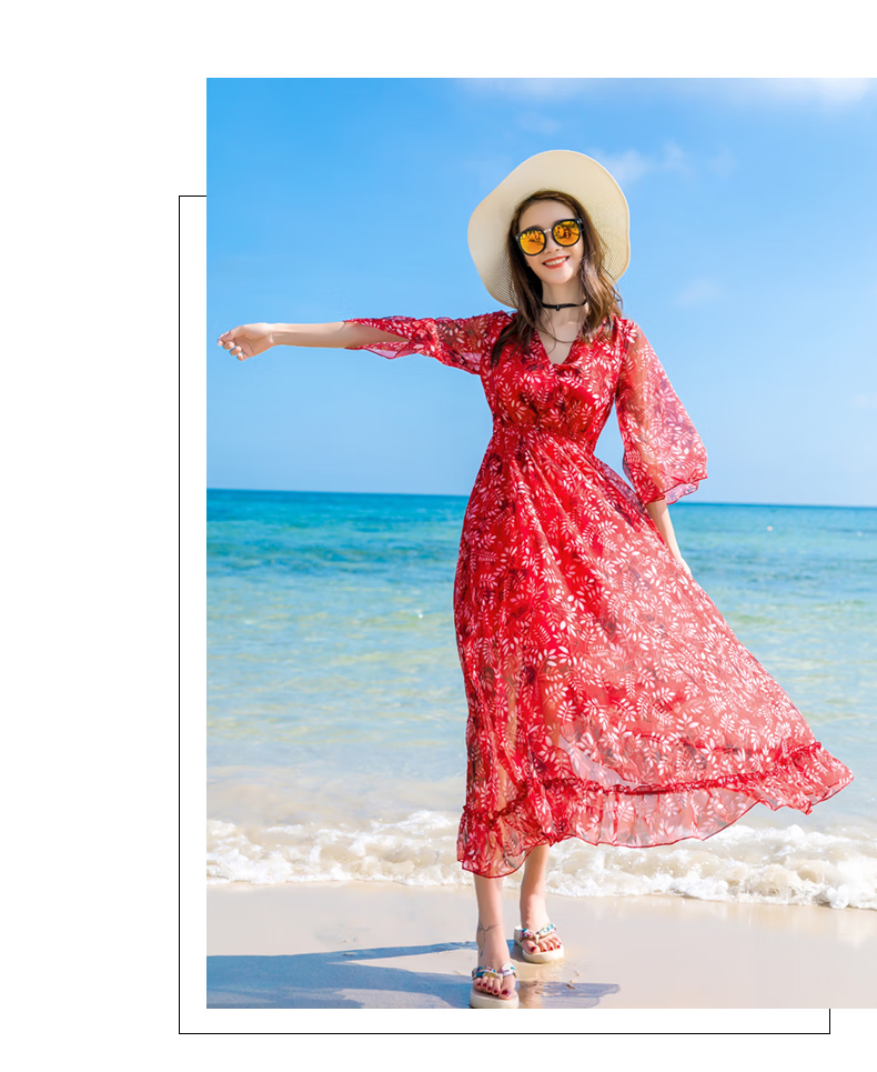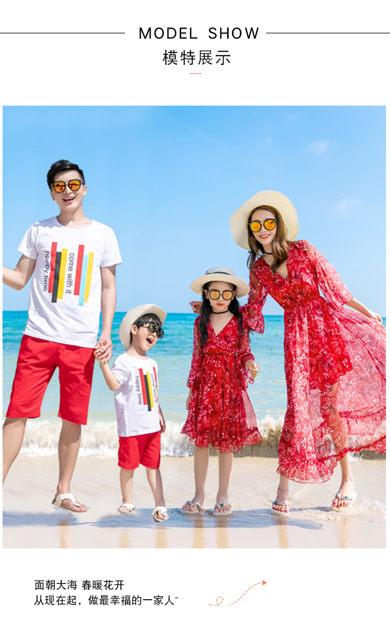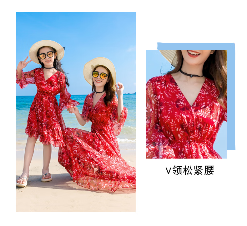 Yuehaiyuebei parent-child clothing for a family of three, beach vacation, mother-daughter clothing, red dress, long skirt, Sanya travel family of four, burgundy, women's XL