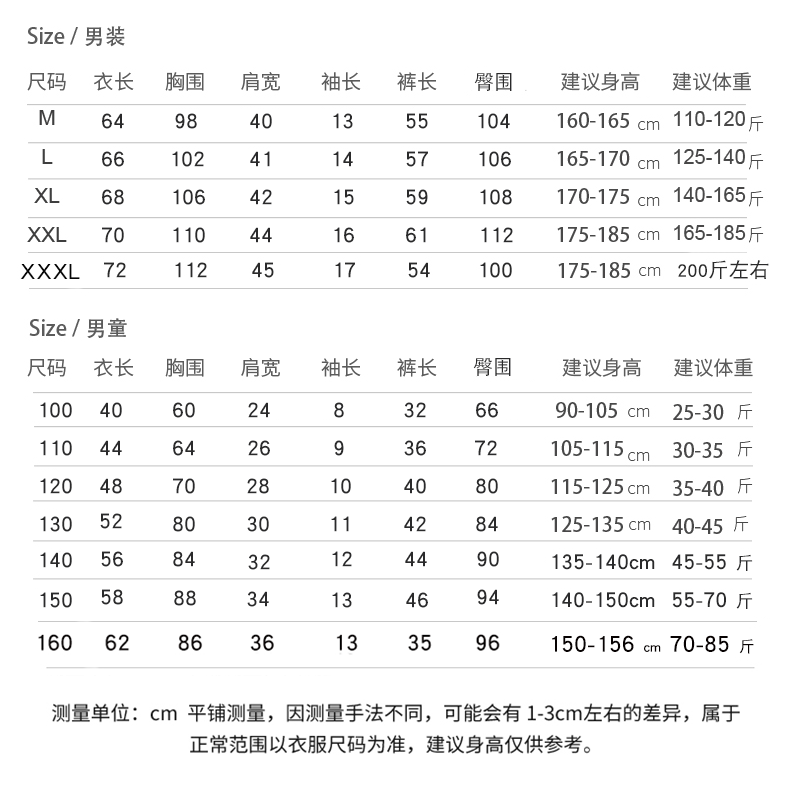 China (cm) 160-165/84-86 165-170 / 88-90 167-172 / 92-96 168-173 / 98-102 170-176 / 106-110