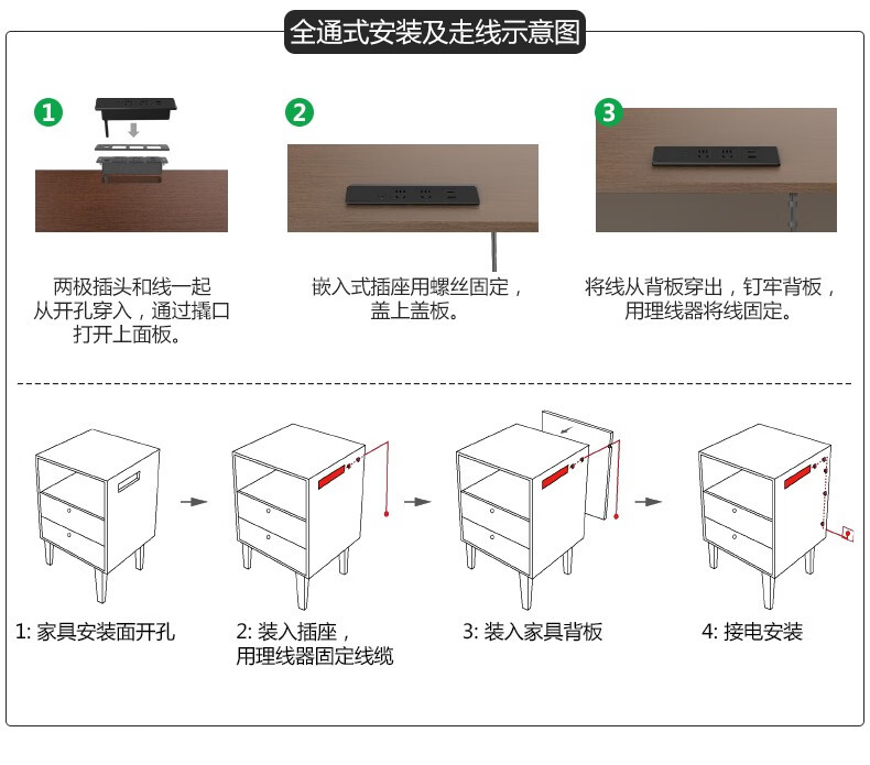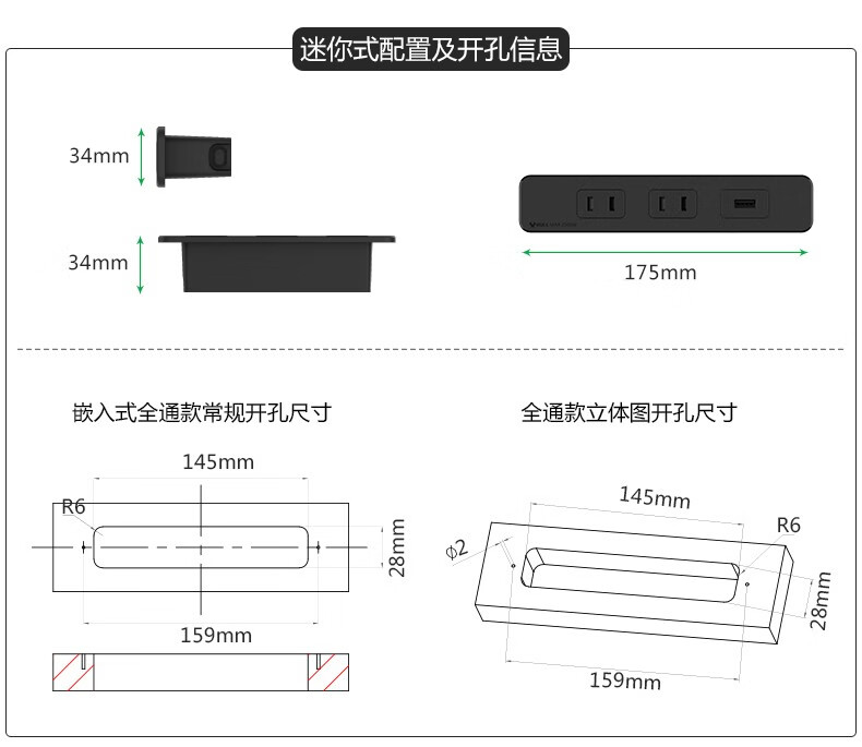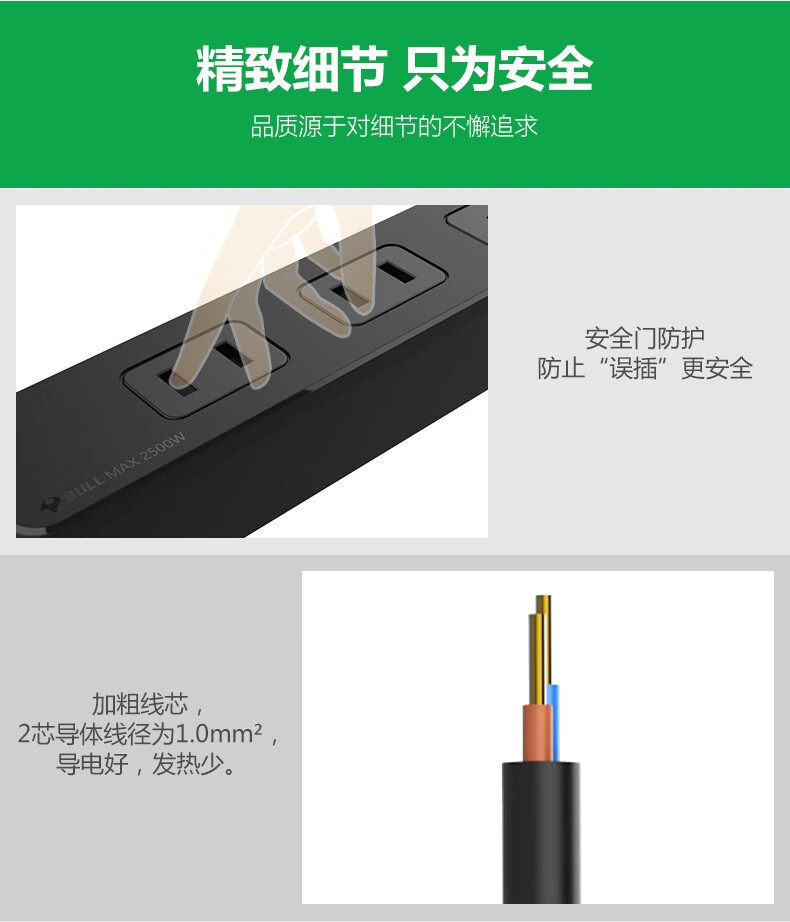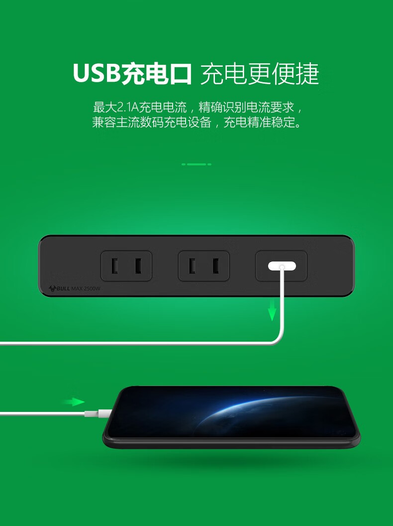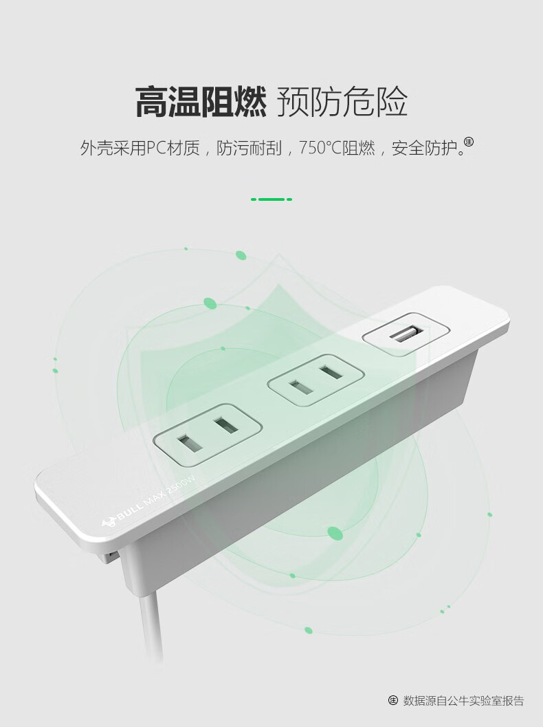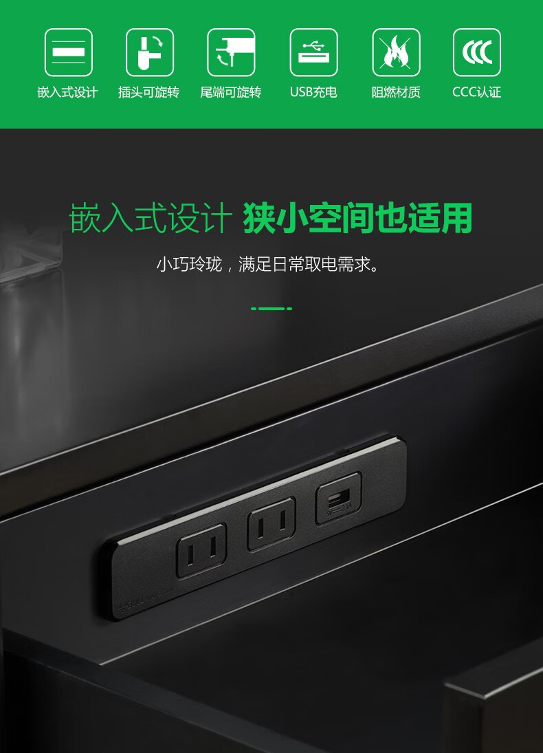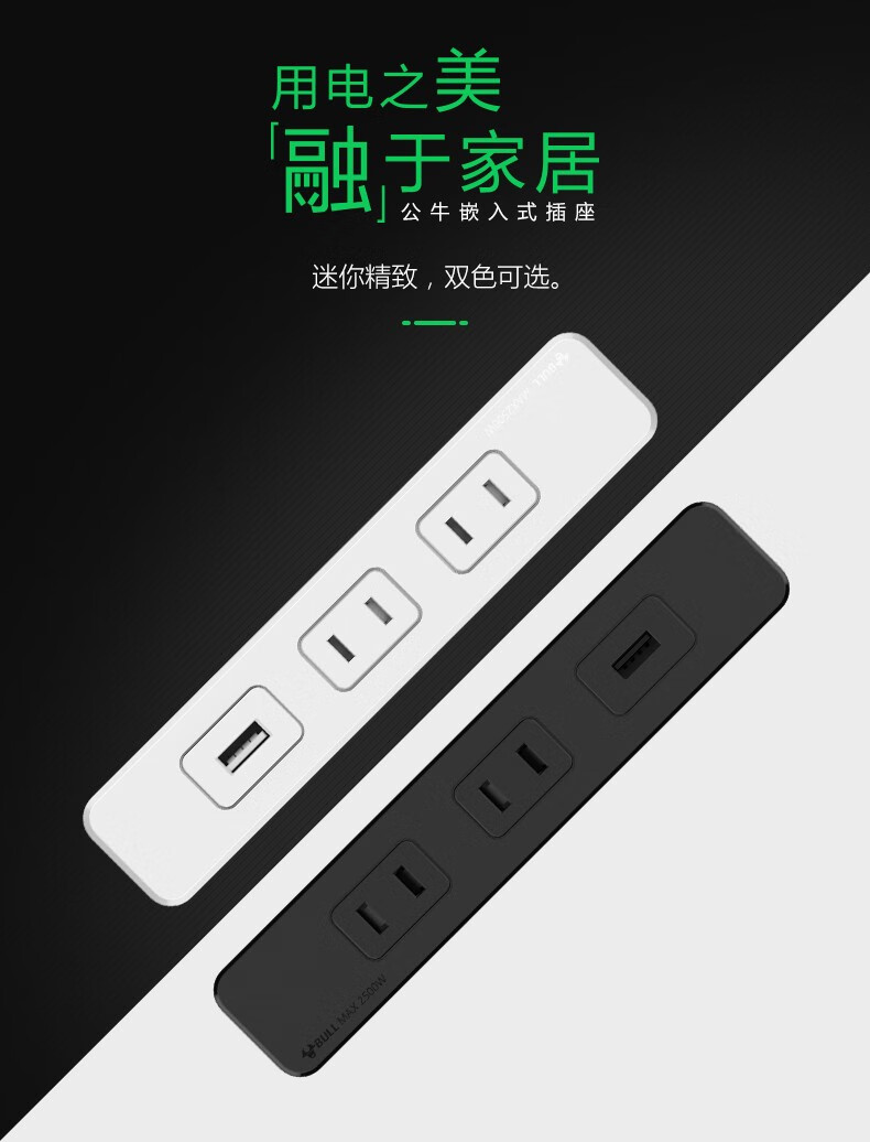 Bull embedded desktop socket panel USB charging socket cabinet wiring board multi-hole conference desk socket multi-function wiring board black 2 positions 5 holes + 2 USB 1.8 meters