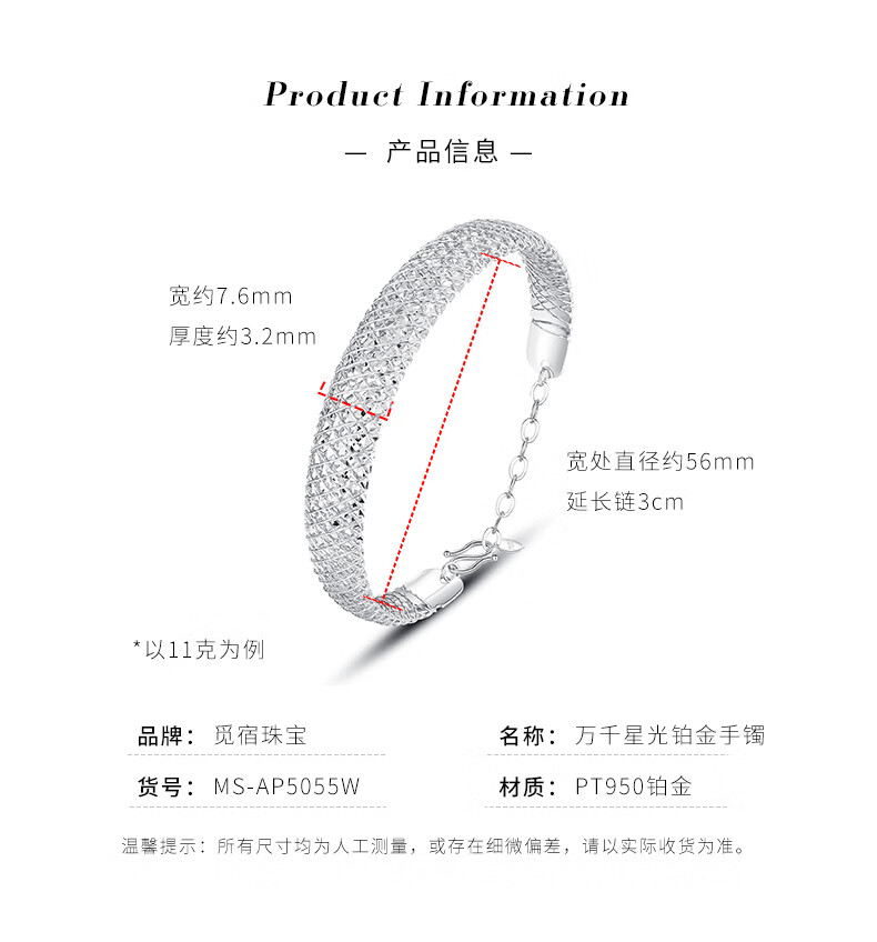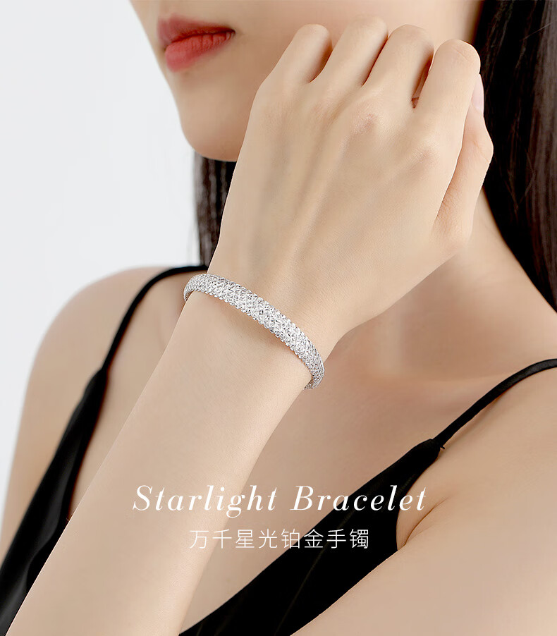 Misu high-quality platinum bracelet for women, pt950 white gold shining star bracelet, adjustable, birthday gift for wife, weight 13.5-13.7g, width about 10.0mm