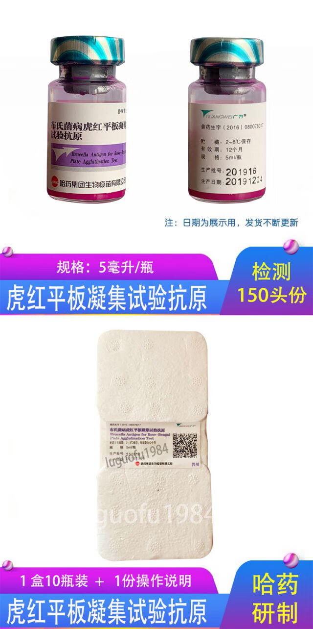 Breeding brucellosis test reagent brucellosis tiger red plate agglutination cattle and sheep antigen breeding brucellosis reagent self-test 50 pieces of tiger red reaction cardboard