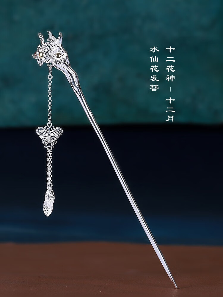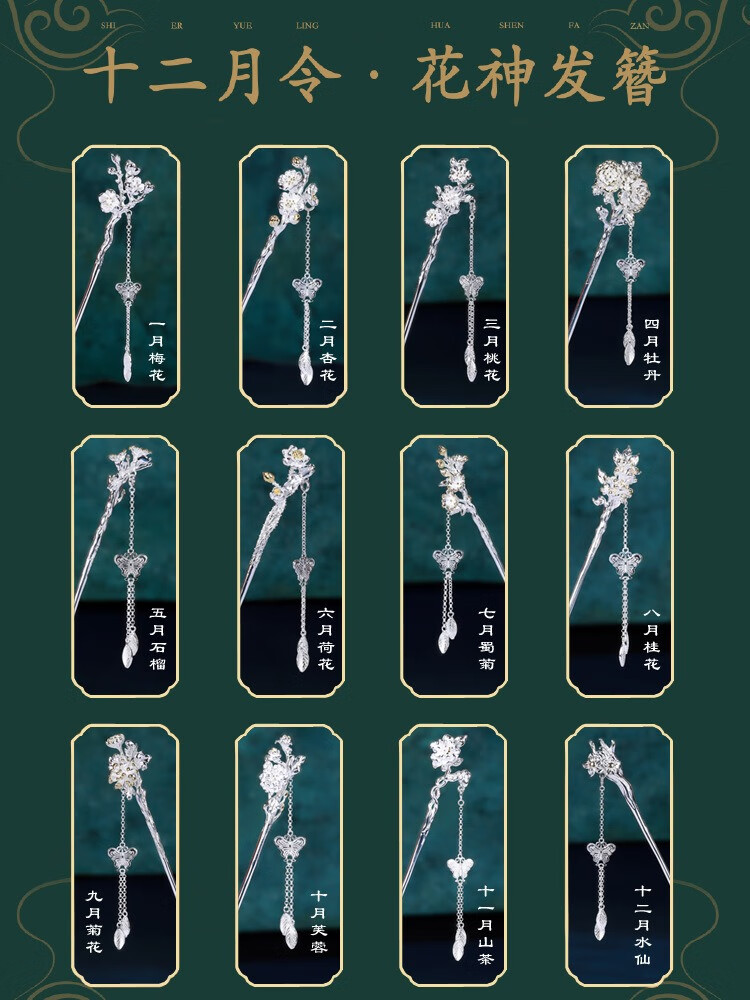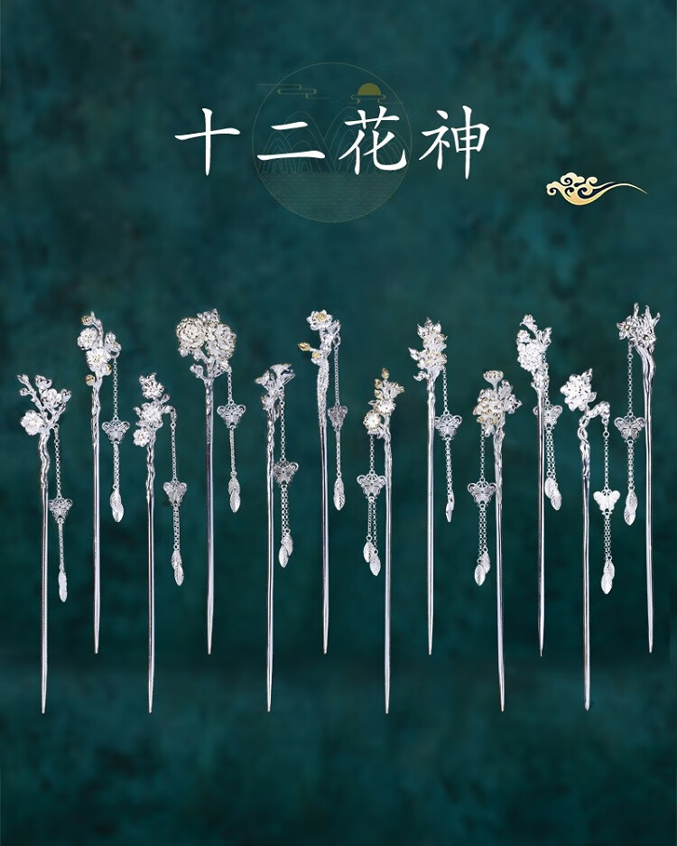 Su Shiliu Twelve Flower Goddess Ancient Style Hairpin Female Tassel Coiled Hairpin Hanfu Headdress Hair Accessory Birthday Gift for Girlfriend and Wife October Hibiscus