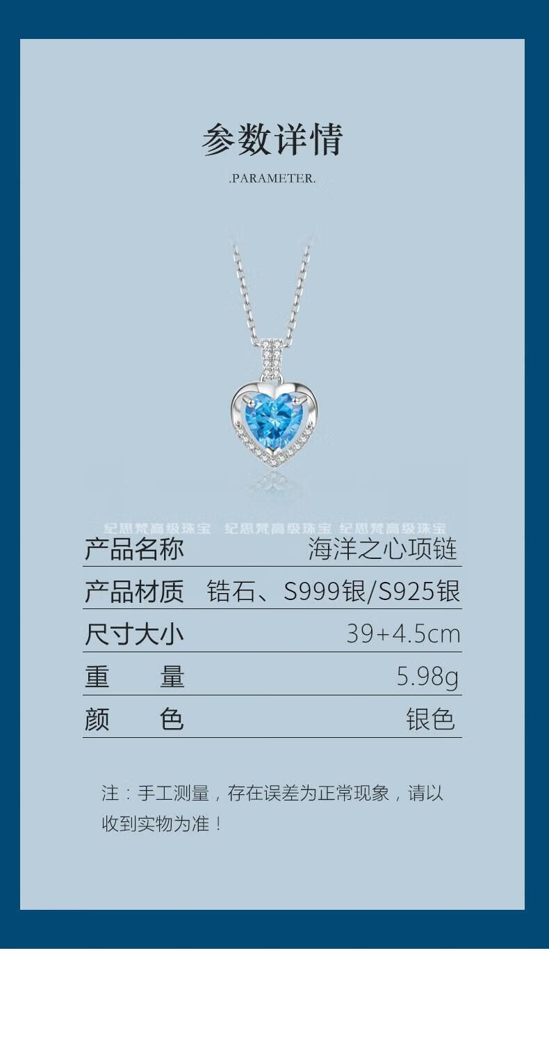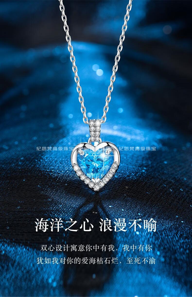 Ji Sifan Light Luxury Jewelry Fashion Jewelry Heart of the Ocean Necklace Women's Valentine's Day Birthday Gift for Girlfriend Necklace-Emerald