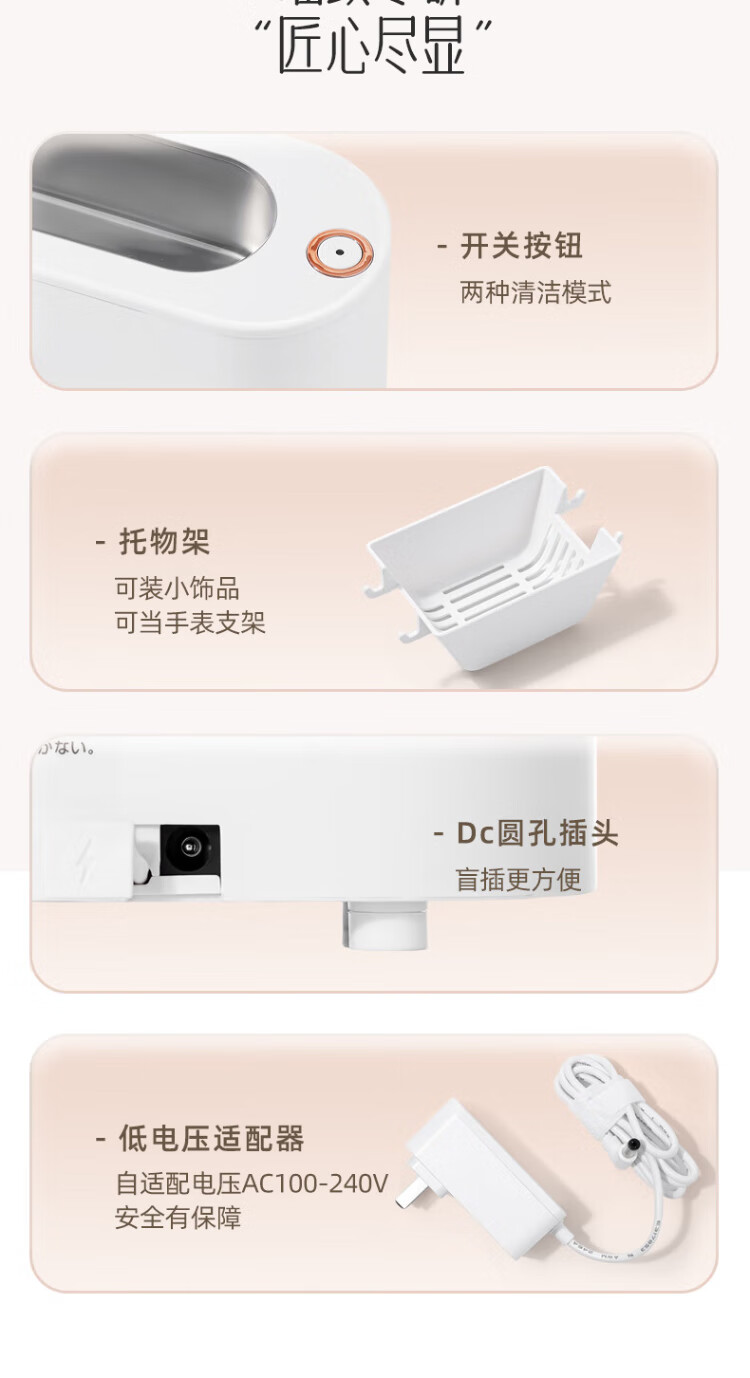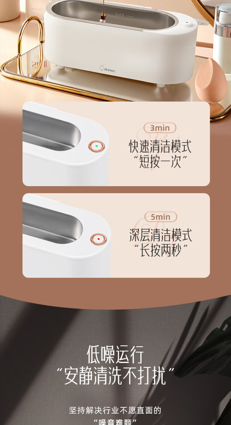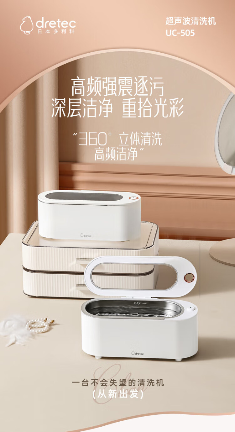 Dretec Japanese ultrasonic cleaning machine household coated glasses cleaner denture braces watches jewelry makeup brushes fully automatic portable cleaning artifact UC-505 Japanese ultrasonic cleaning machine